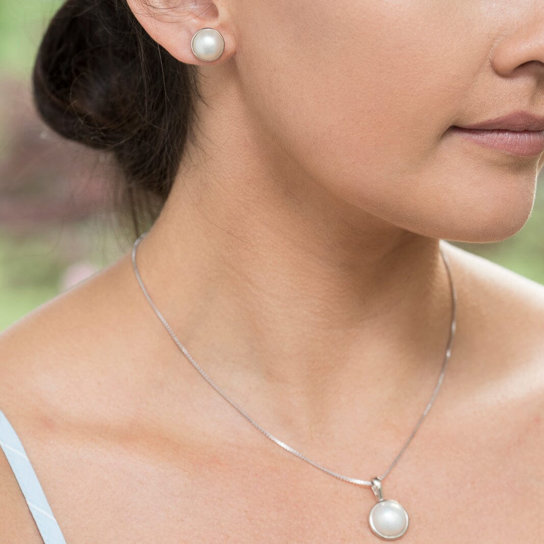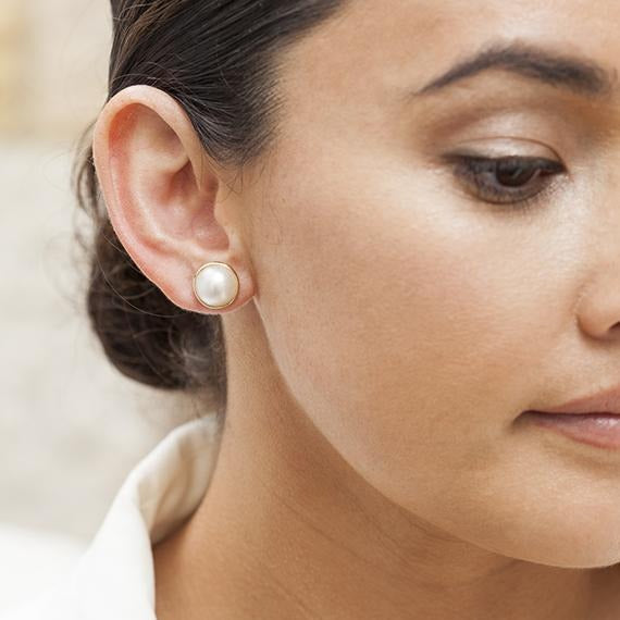 For those who appreciate opulent classics exuding a creamy and flawless elegance, our white Mabe cultured pearl stud earrings are an absolute essential. These earrings possess remarkable versatility and make for the perfect everyday accessory, boasting a minimalist yet magnificent design. Choose from Silver or 9ct Gold options to suit your preference. Combine with the Adeline Pendant to create a stunning ensemble.
