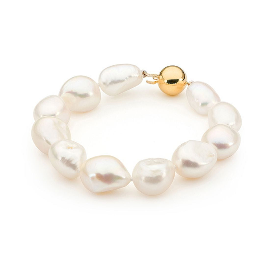 With every piece being unique, our Keshi Freshwater bracelet is the perfect way to show off individuality as well as subtle class. Fitted with a 9ct Yellow Gold ball clasp, its ease of wear and lustrous appearance makes it a great option for any occasion.