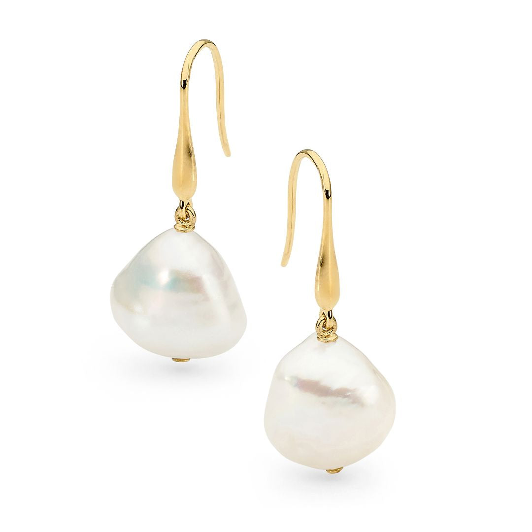 Introducing the Akari Earrings, a divine tribute to elegance and grace, named after the Olympian goddess of marriage. Meticulously crafted, each pair exudes regal sophistication, adorned with a single pearl. These Keshi earrings offer a naturally irregular and textured appearance, finished with a 9ct Gold shepherd hook style. Versatile for formal, casual, or bridal wear, they embody timeless beauty and feminine power.
