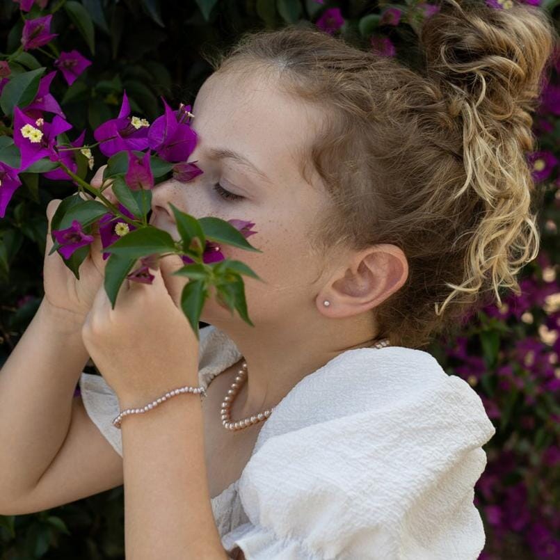 Sweet and dainty, the Azalea Studs from our Bambini Collection are crafted for little ears, featuring a soft natural pink round pearl that adds a touch of youthful charm. Available in various kids' sizes and set in 9ct Yellow Gold or Sterling Silver, these earrings are a lovely gift for birthdays, christenings, or simply to show you care. With their timeless beauty, they are designed to be treasured by today’s young girls and lovingly passed down to future generations.