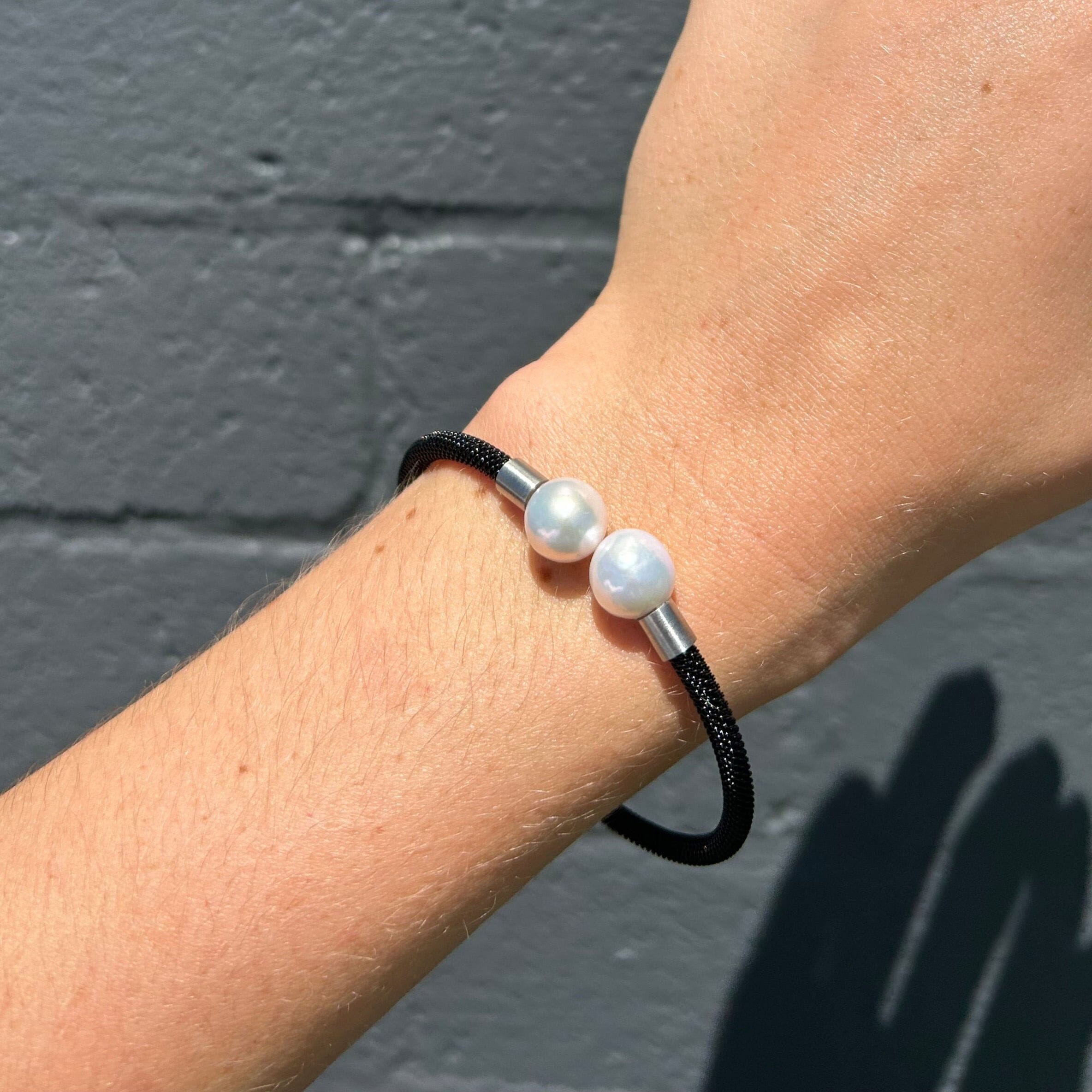 Our Edison Mesh Bracelet boasts a pair of lustrous Freshwater pearls finished with German Stainless Steel ball ends. It's an ideal choice, whether you prefer to wear it solo or layer it to complement various casual or formal looks.