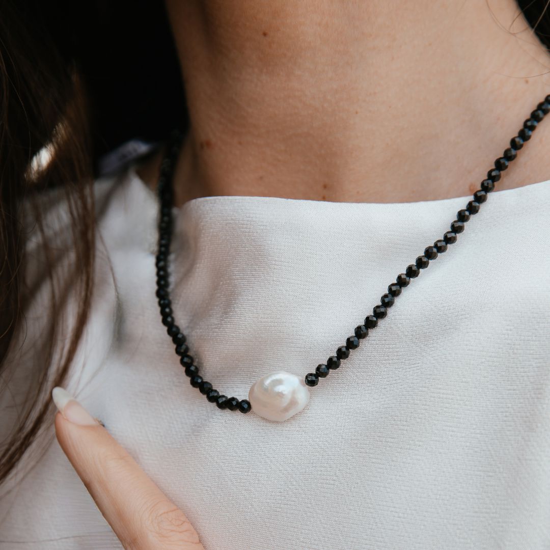 Upgrade your jewellery collection with our beautiful Black Spinel and Keshi Freshwater Pearl Necklace, a perfect combination of sophistication and natural allure. We've carefully chosen each element to harmonize the sleek charm of black spinel with the ethereal elegance of Keshi pearls. You can also get the matching Spinel & Keshi bracelet to create a stunning set.