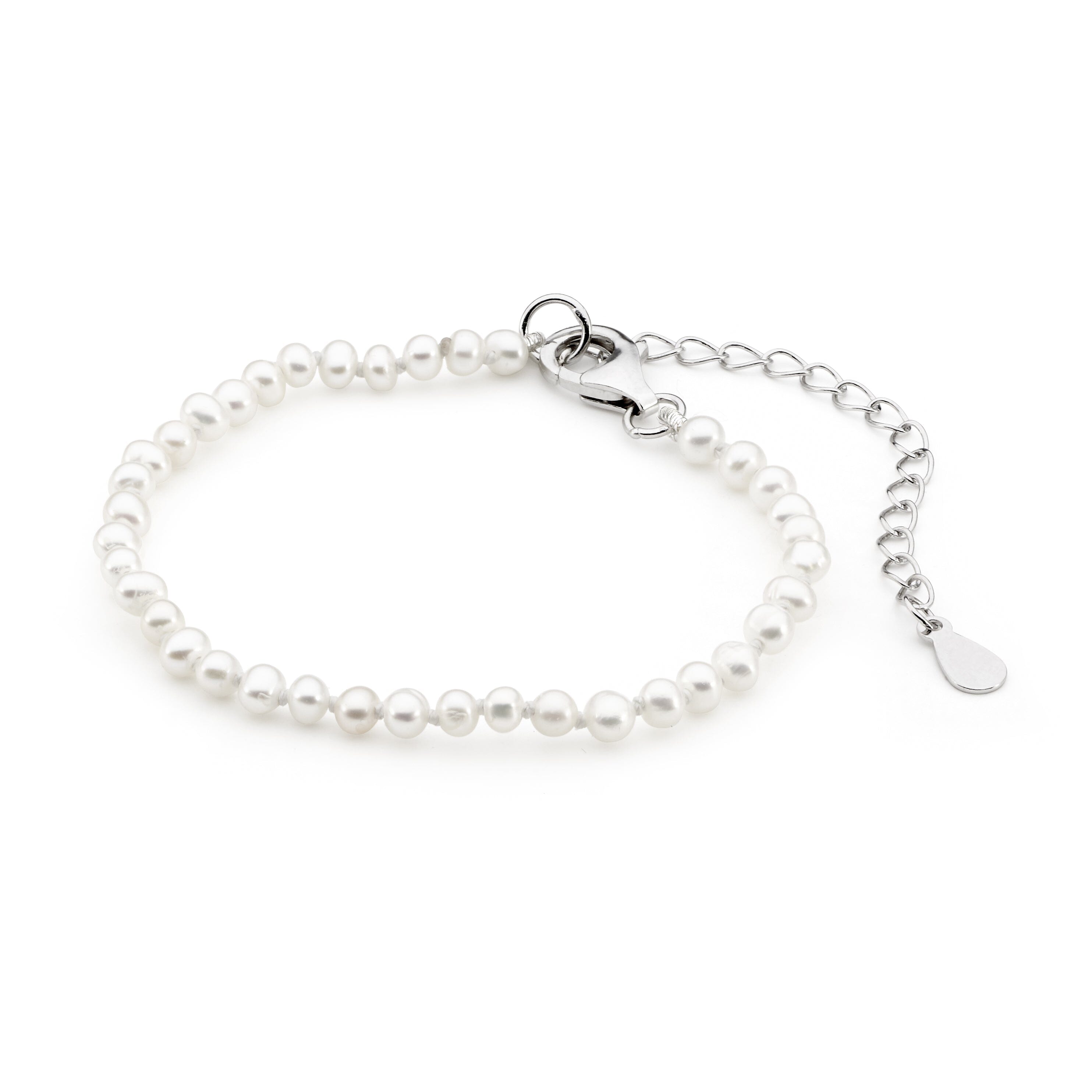 The Flora Bracelet from our Bambini Collection brings timeless charm to young girls. Featuring individually knotted pearls, available in natural white or pink, this bracelet offers a look of understated sophistication. A sterling silver extension chain and secure lobster clasp provide a comfortable, adjustable fit, allowing it to be worn and loved as she grows. Ideal as a stylish addition to her wardrobe or a meaningful gift for special occasions.