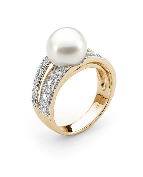 Introducing the Harriet South Sea Ring, a stunning piece inspired by an antique design that combines timeless elegance with modern sophistication. Crafted in your choice of 9ct yellow or white gold, this exquisite ring features a white South Sea pearl as its captivating centrepiece. The open band is adorned with precious diamonds, adding a touch of brilliance and enhancing the ring's luxurious appeal.