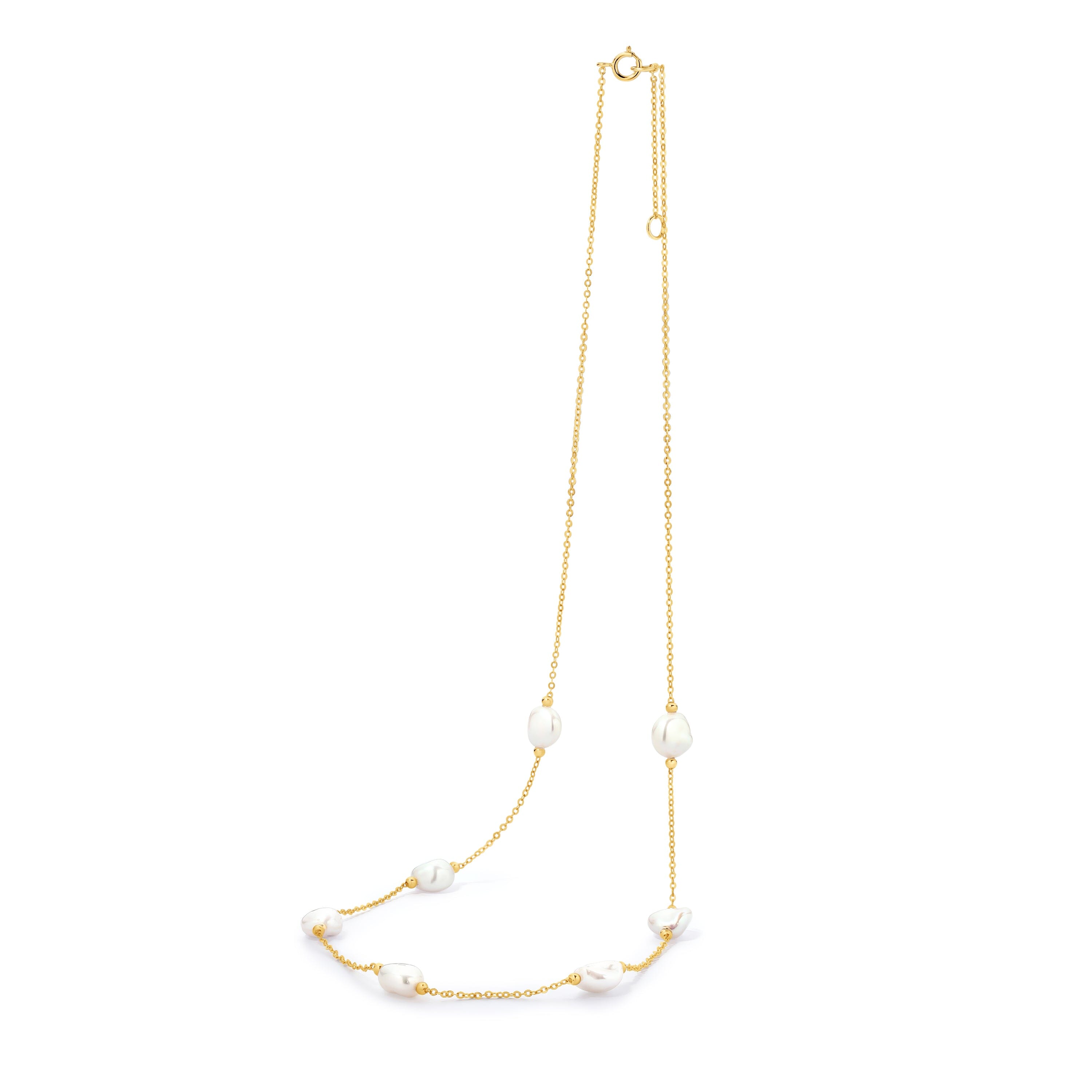 An effortless blend of elegance and individuality, the Juliette Necklace features a 14ct yellow gold chain adorned with naturally shaped white Keshi pearls. Each pearl is unique, creating a fluid, organic feel that brings a modern twist to classic luxury. A timeless piece designed to elevate everyday styling or add subtle sophistication to special moments.