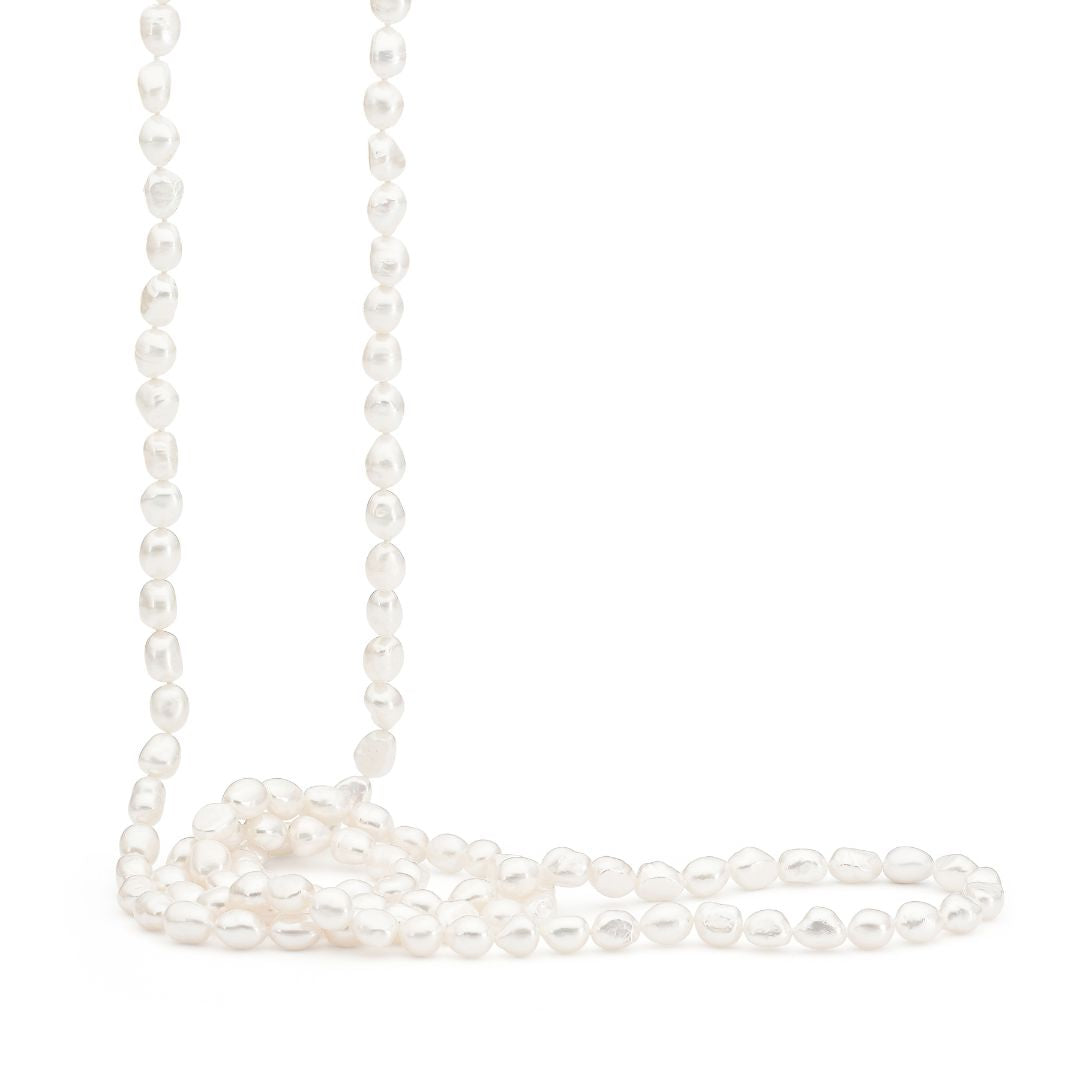 Showcase your individuality with the exquisite Viola Necklace. Each piece is unique, featuring white Keshi freshwater pearls that exude subtle class and elegance. Available in various lengths, with your choice of a sterling silver 9mm ball clasp or no clasp for the 120cm length. This necklace is perfect for any occasion and a timeless addition to any jewellery collection.