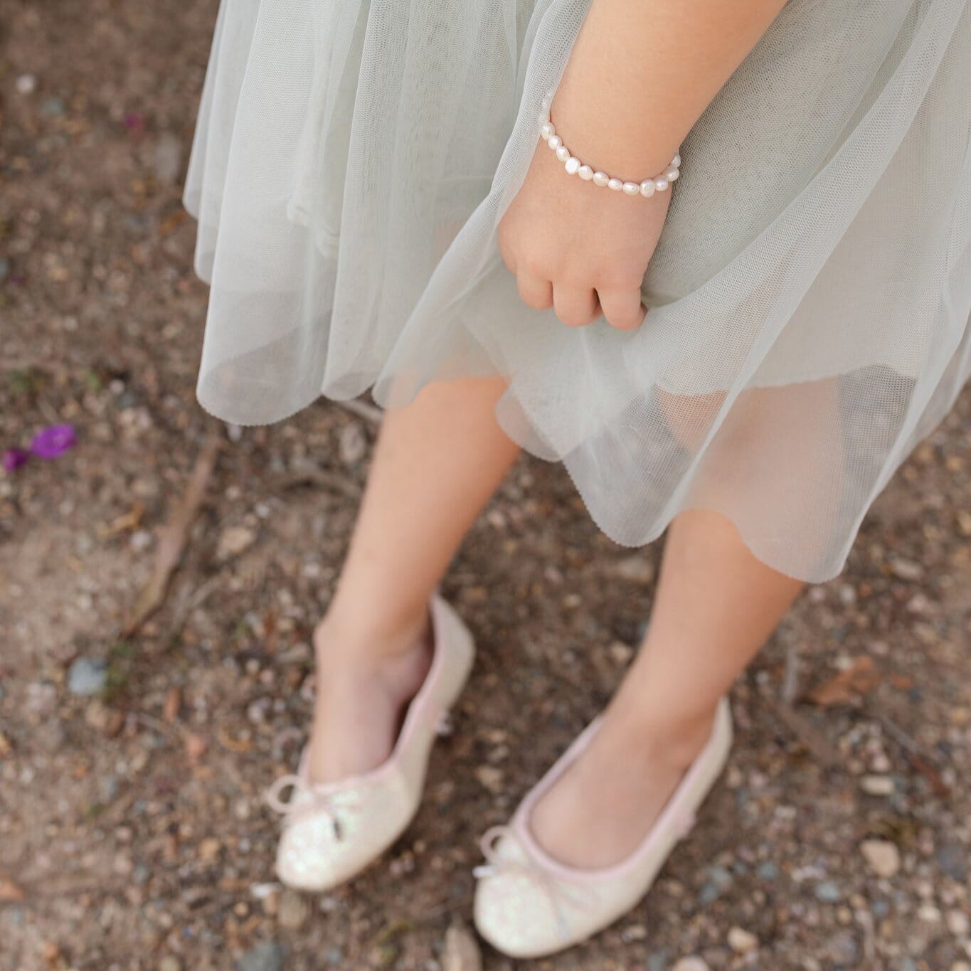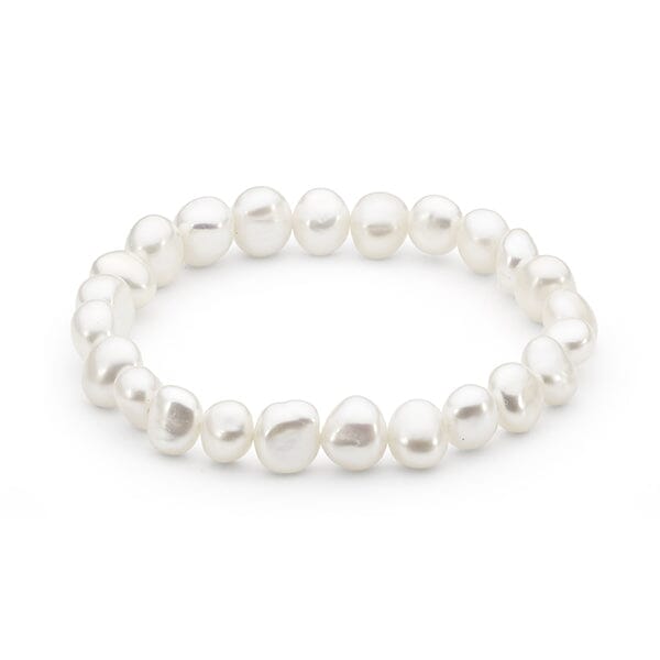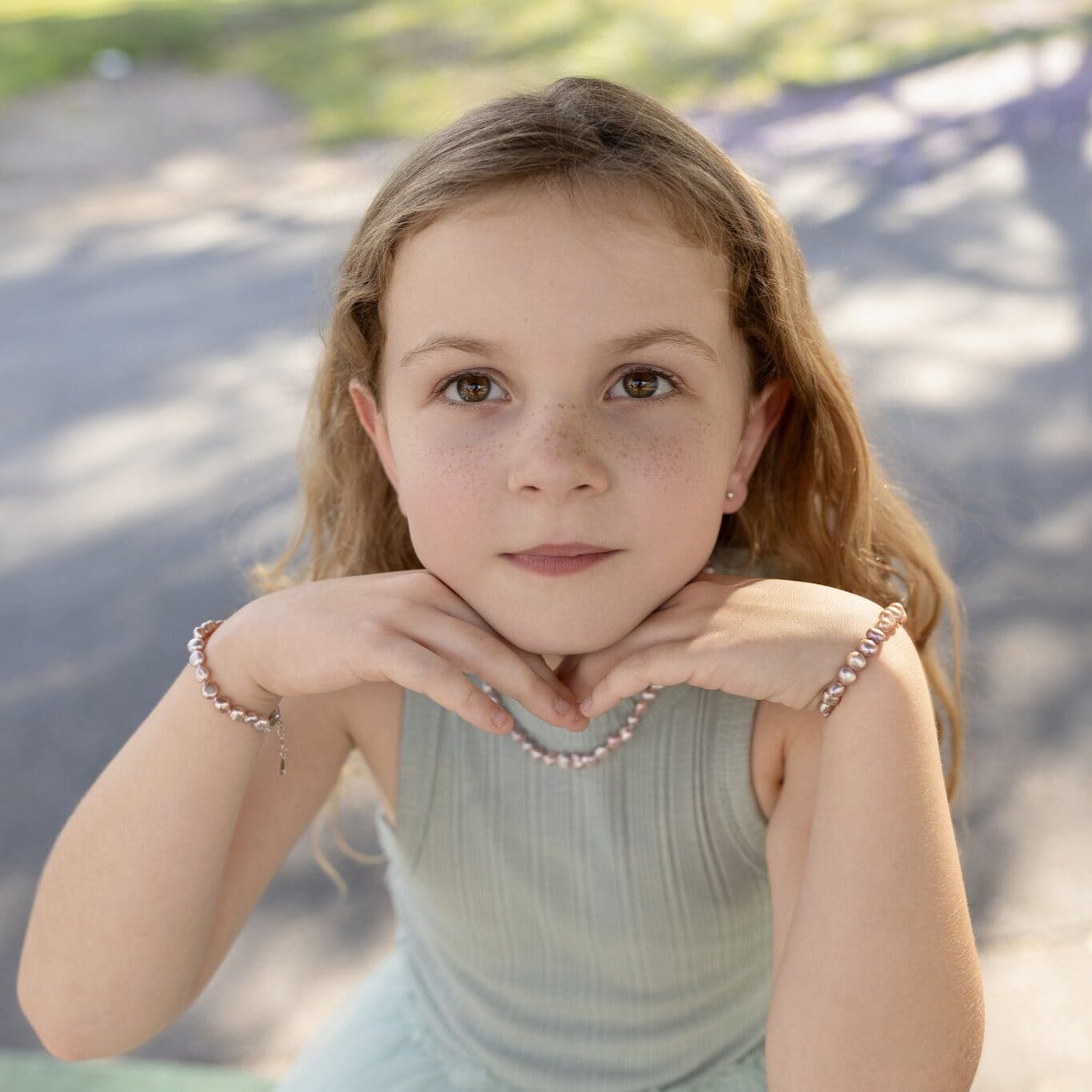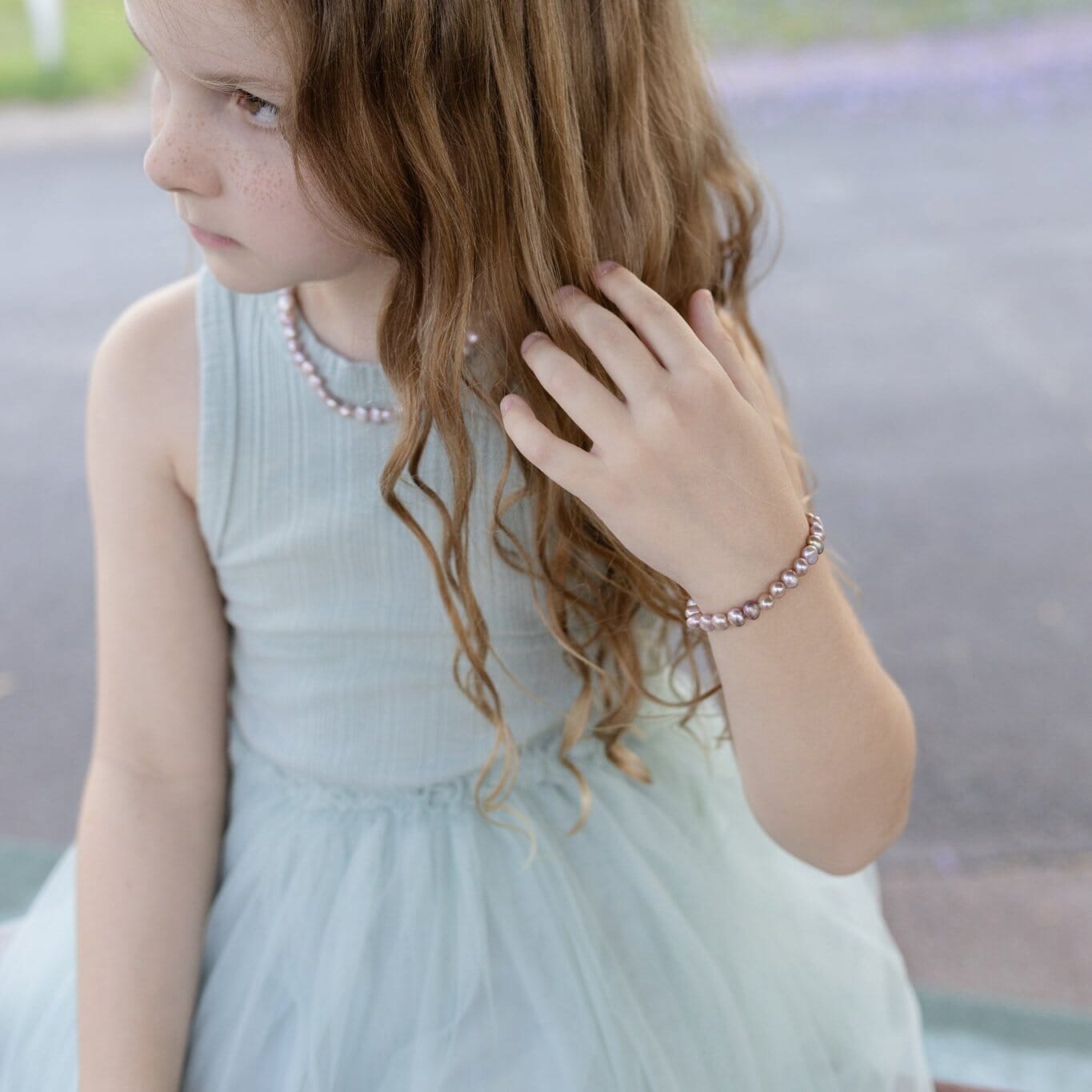 The Meadow Bracelet from our Bambini Collection is a delightful piece featuring unique Keshi pearls in natural white or soft pink. With its comfortable elastic design, this bracelet is easy to wear and perfect for any child. The natural, organic shapes of the pearls add a touch of playful elegance, making it a thoughtful gift or a charming addition to their collection for special occasions.