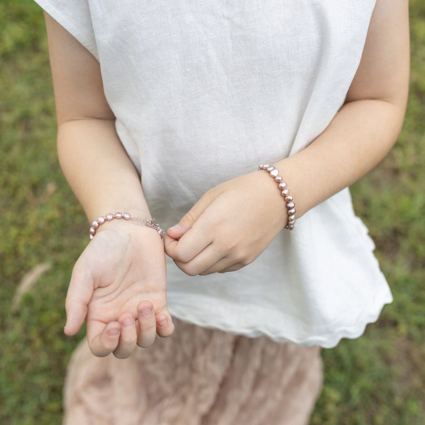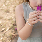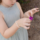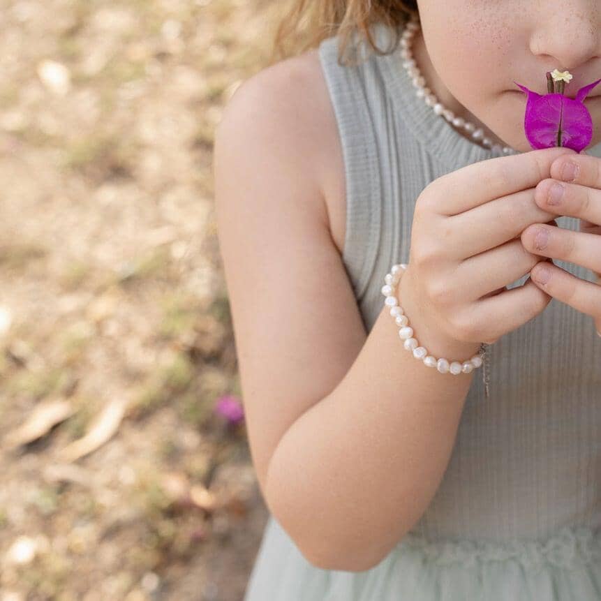 Part of our Bambini Collection, the Primrose Bracelet features a delicate strand of petite Keshi pearls, each hand-knotted for lasting quality and charm. Available in natural white or natural pink, this bracelet showcases the unique beauty of Keshi pearls with their soft, lustrous shapes. A sterling silver extension chain and secure lobster clasp provide a comfortable, adjustable fit, making it a piece she can wear and treasure as she grows. Perfect for adding a little sparkle to her favourite outfits.