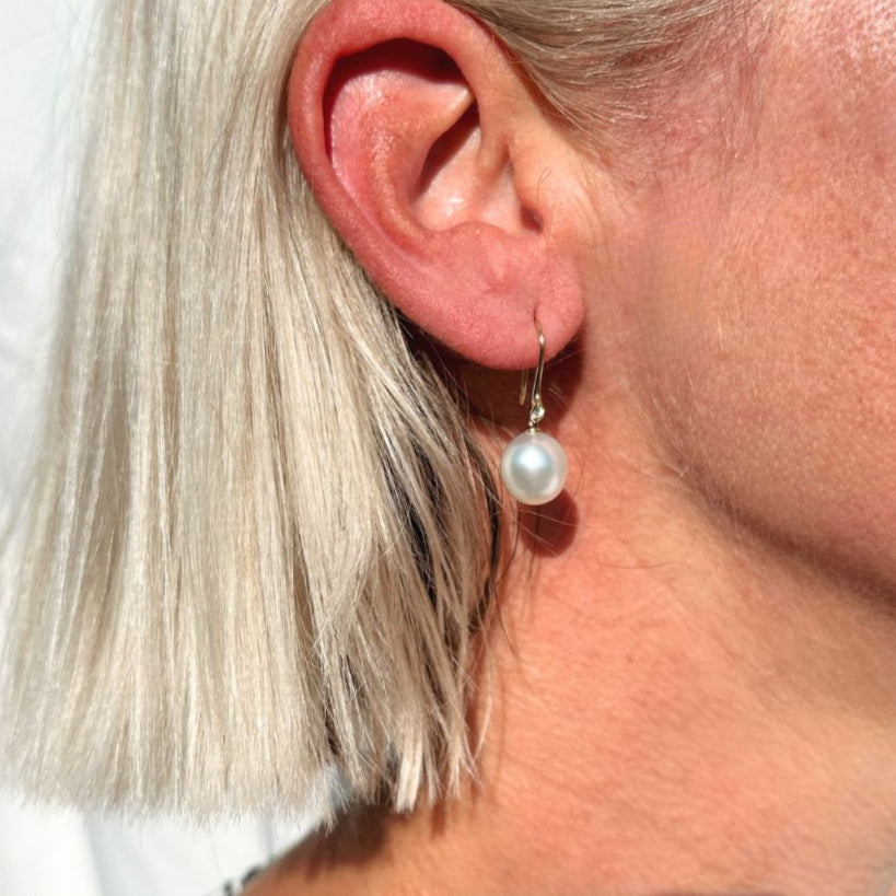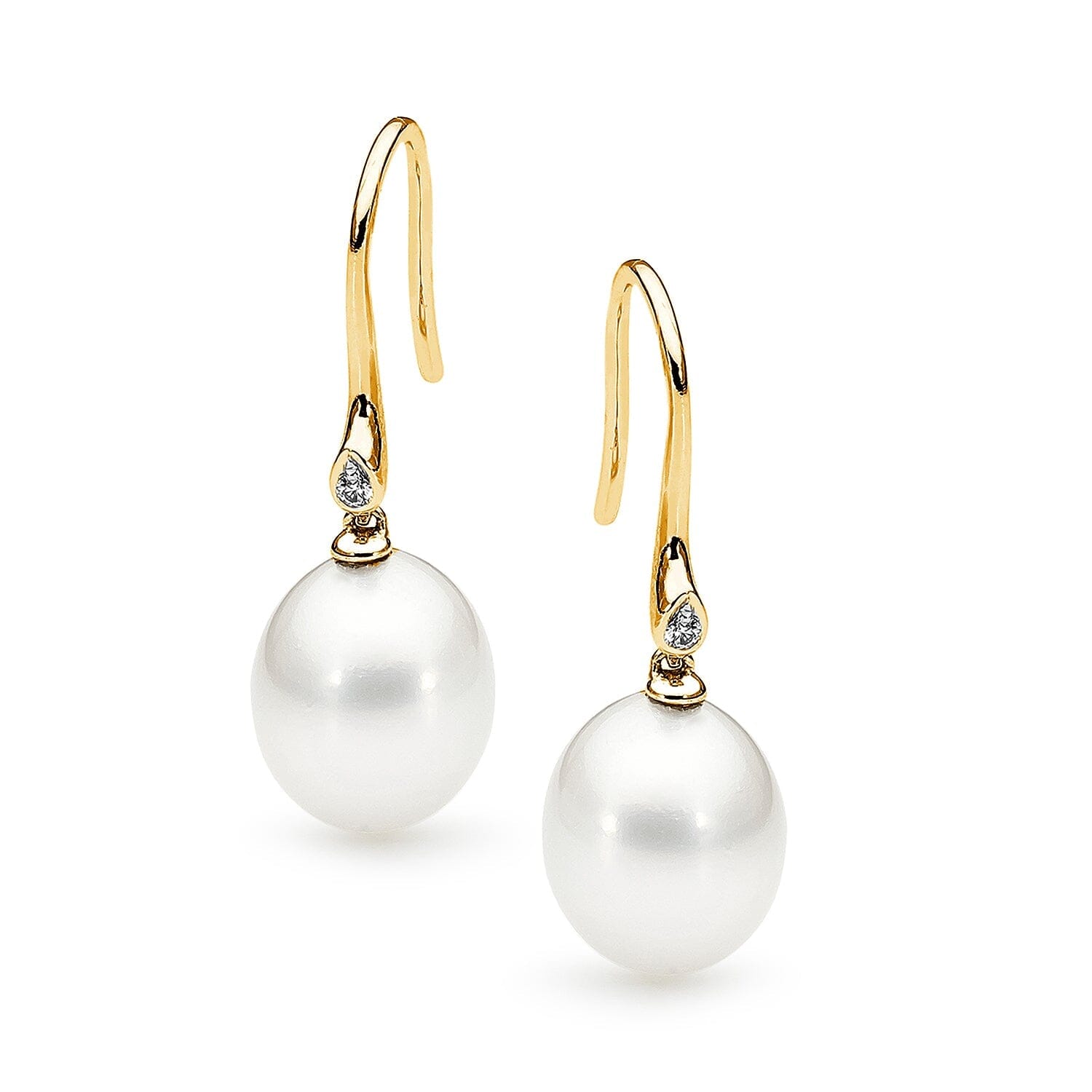 For a simple and sleek look, our South Sea drop hook earrings are the perfect option. Set on a slender bail with the accent of an elevated Diamond stud, these earrings are available in both 9ct Yellow and White gold to suit any occasion, day or night.