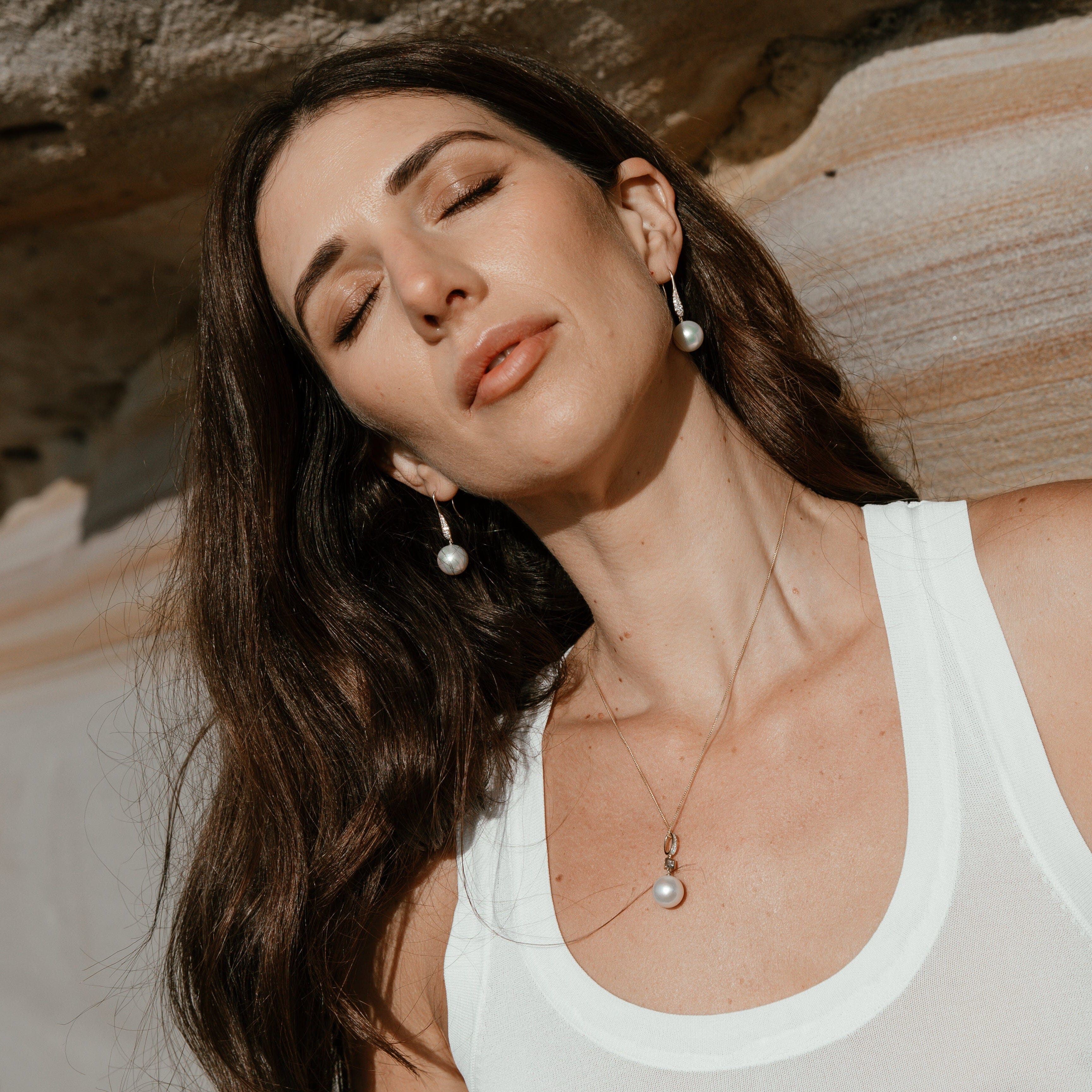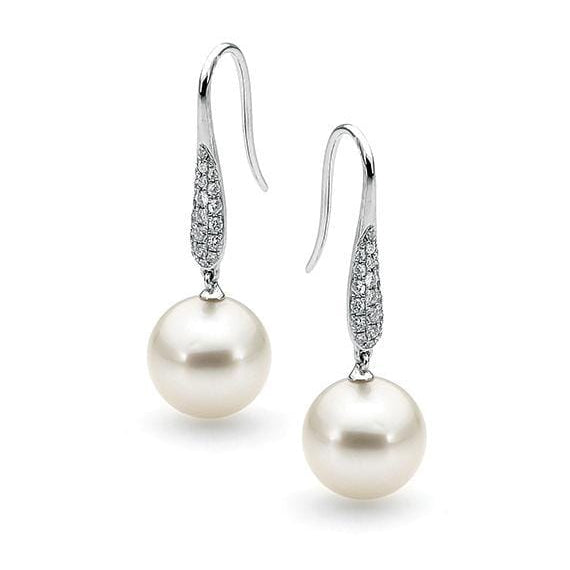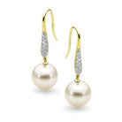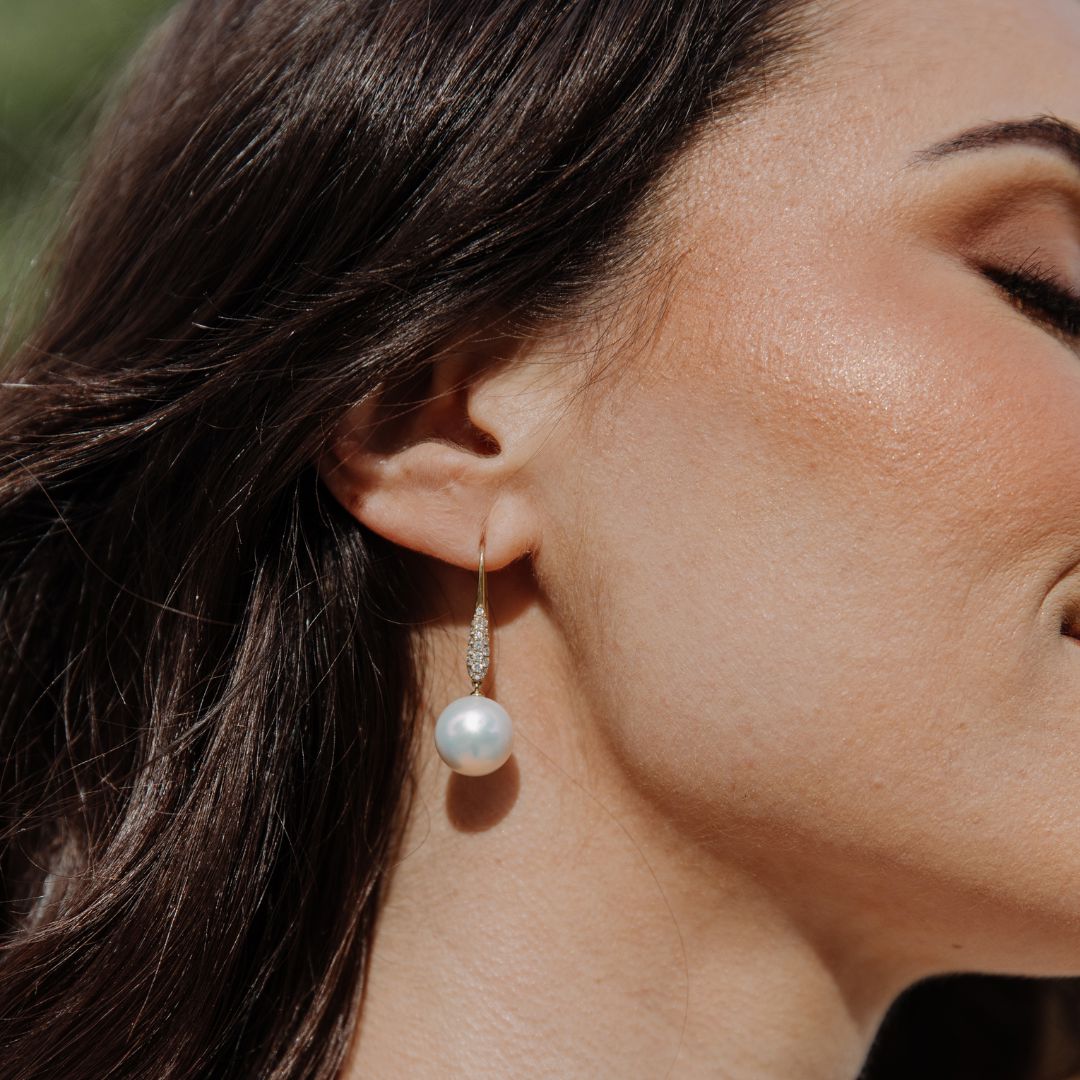 Experience pure luxury with our Aveline South Sea Earrings, a spectacular combination of diamonds and South Sea pearls. These exquisite drop earrings feature lustrous pearls suspended from diamond-encrusted gold hooks, creating a captivating and elegant look. Crafted in your choice of 9ct gold, available in yellow and white gold options, these earrings are perfect for any occasion.