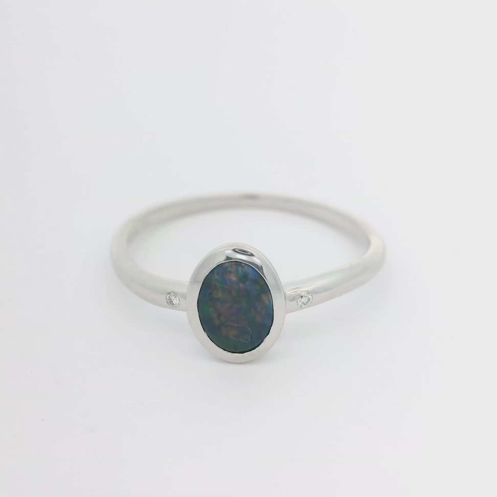 Charcoal Blue Black Opal & Diamond Ring 079