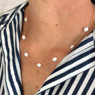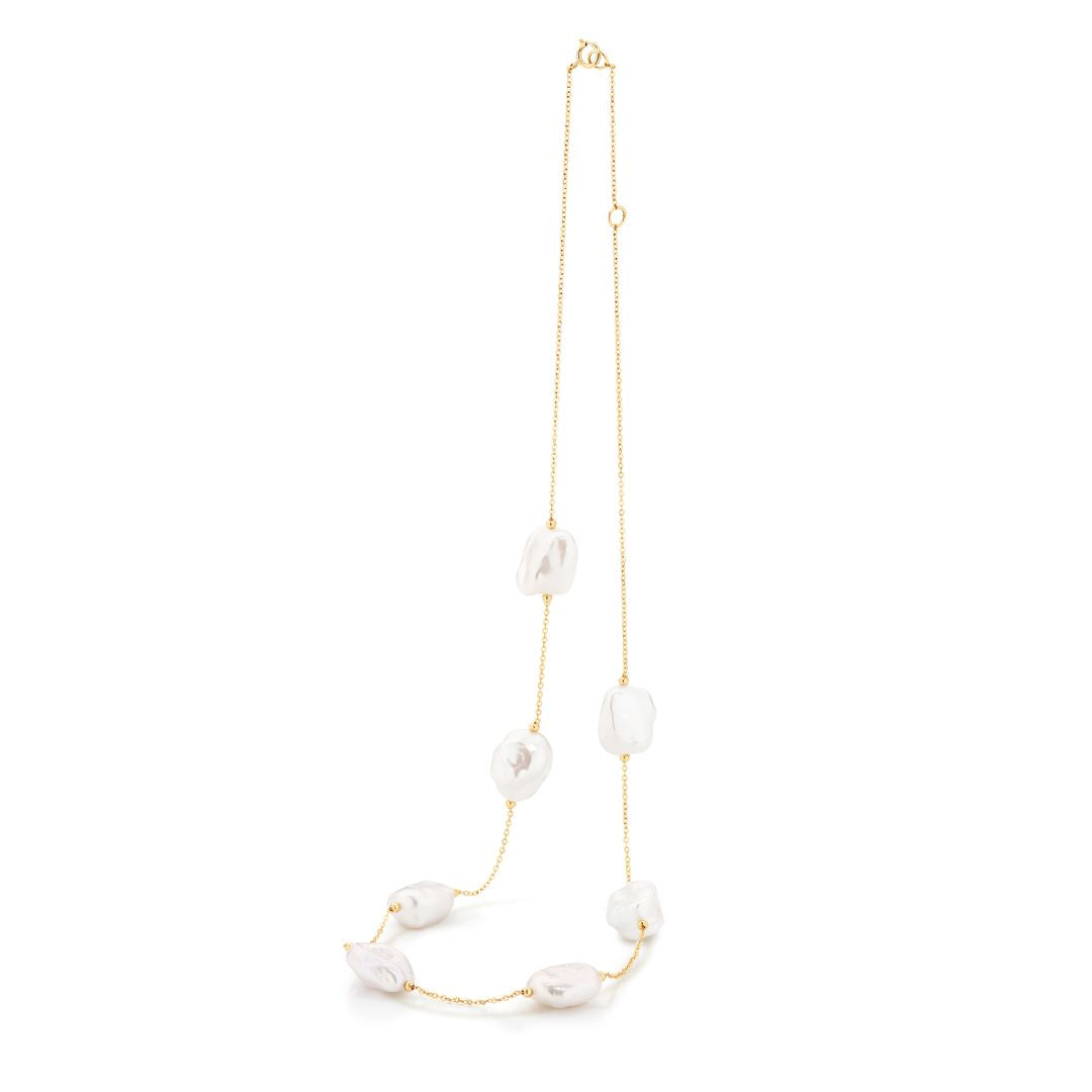 An effortless blend of elegance and individuality, the Juliette Necklace features a 14ct yellow gold chain adorned with naturally shaped white Keshi pearls. Each pearl is unique, creating a fluid, organic feel that brings a modern twist to classic luxury. A timeless piece designed to elevate everyday styling or add subtle sophistication to special moments.