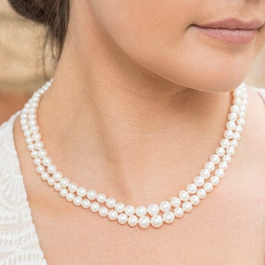 Elevate your style with our exquisite graduated double row freshwater necklace, a flawless fusion of individuality and understated elegance. Featuring a luxurious ball clasp and double strands for added dimension, its effortless versatility ensures it's the ideal choice for every occasion.