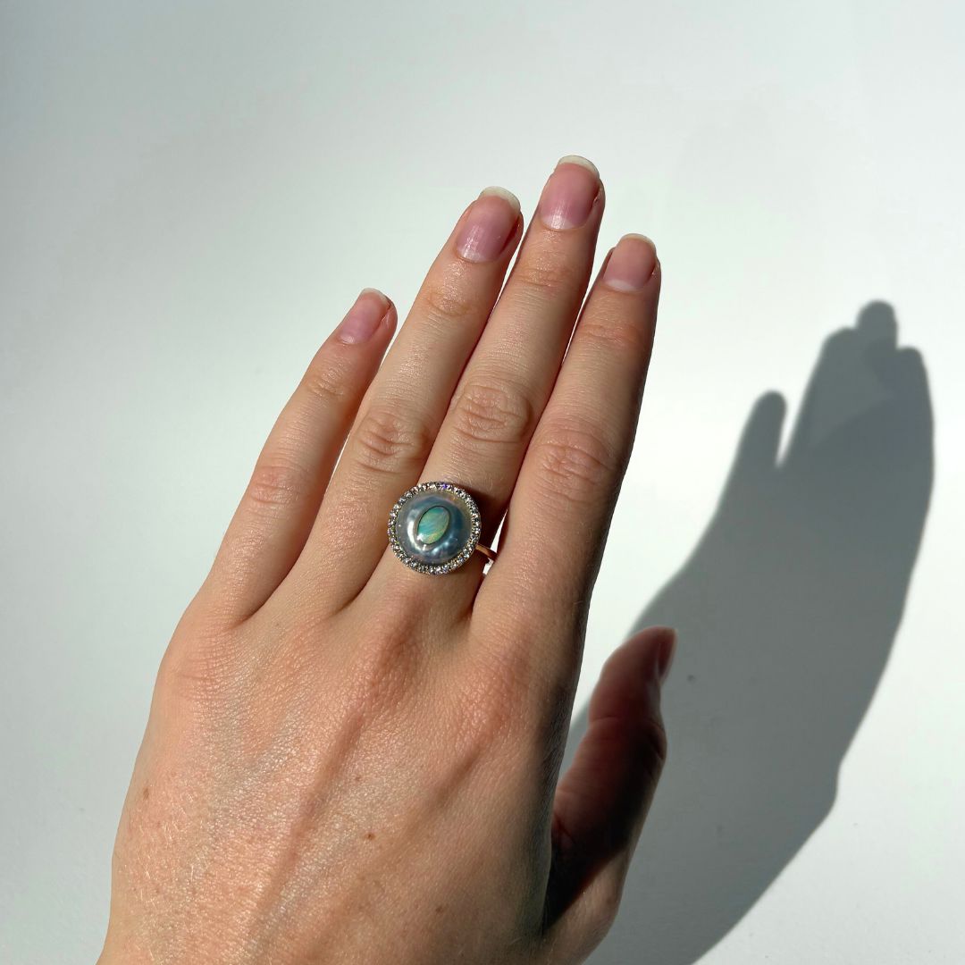 Discover this stunning piece from the Earth+Ocean Jewellery collection, featuring a unique Solid Opal and South Sea Mabe Pearl. Each piece showcases a natural fusion of opal encased in nacre layers by a Batwing Oyster, creating a one-of-a-kind treasure. This collection captures the essence of natural beauty, offering exclusive jewellery that seamlessly blends oceanic and earthy elements through a remarkable natural process.