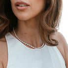 Elevate your style with our unique Ebony Necklace, showcasing individuality and timeless elegance. Each necklace features rice-shaped Freshwater pearls, renowned for their lustre, and is finished with a ball clasp for effortless wear. Perfect for any occasion, it exudes subtle class and showcases your unique style.