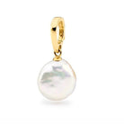 Suspended from a 9ct gold enhancer, this coin-style pearl enhancer radiates uniqueness. Featuring a textured Freshwater coin pearl, this is a flattering and bold addition to any outfit.