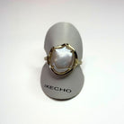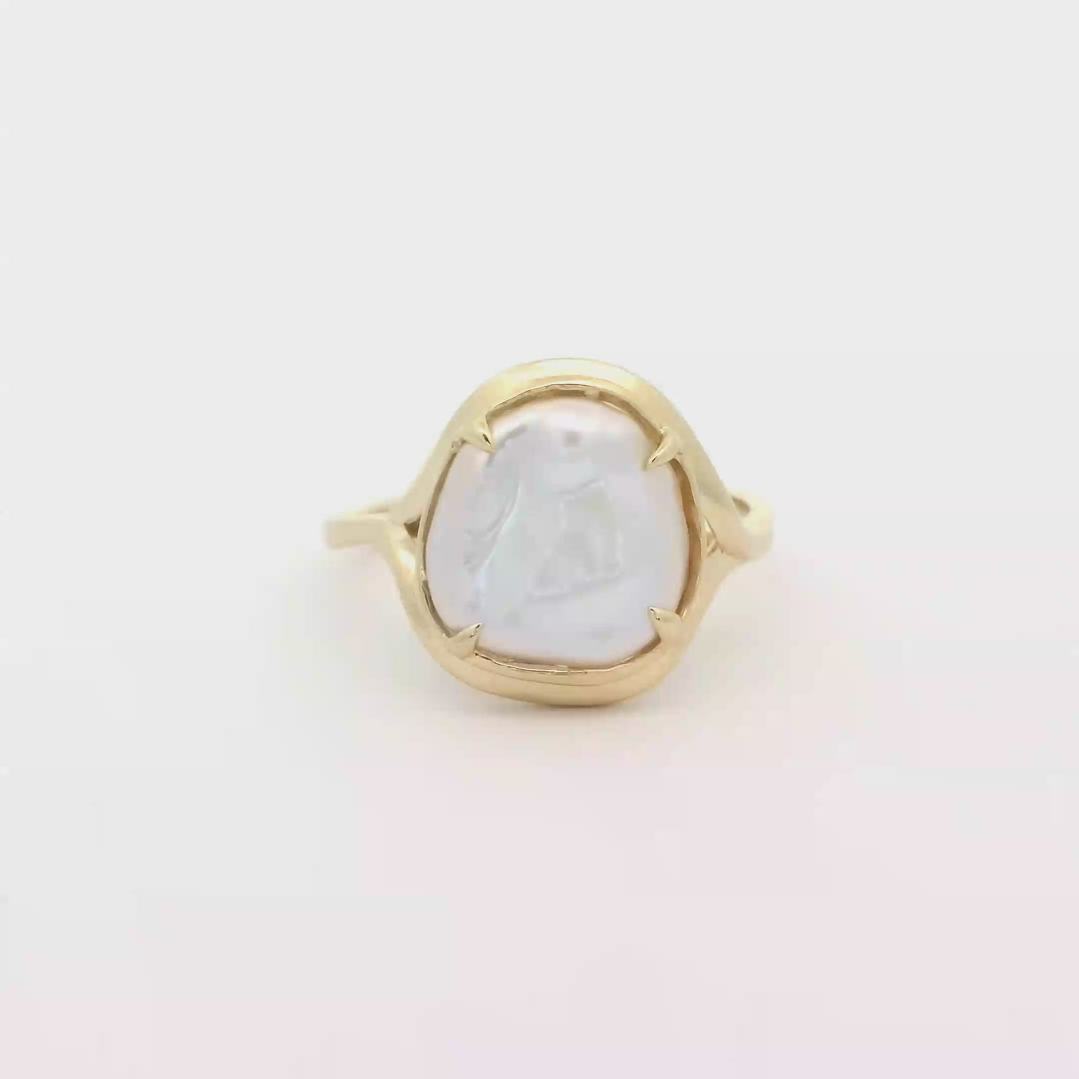Embrace the beauty of subtle elegance with the Mini Amara Ring. This delicate piece showcases a 9ct gold band paired with a petite, lustrous white Keshi freshwater pearl, each uniquely hand-finished to highlight their organic imperfections. The natural textures and contours of the gold and pearl create a distinctive charm, offering a refined, minimalist expression of timeless style.