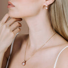 Our pink Edison pearl frosted pendant adorned with sparkling diamonds on the bail combine timeless elegance with a touch of luxury, making it a breath-taking statement piece. Combine with the Rosabella Hoop Earrings to create a stunning ensemble.