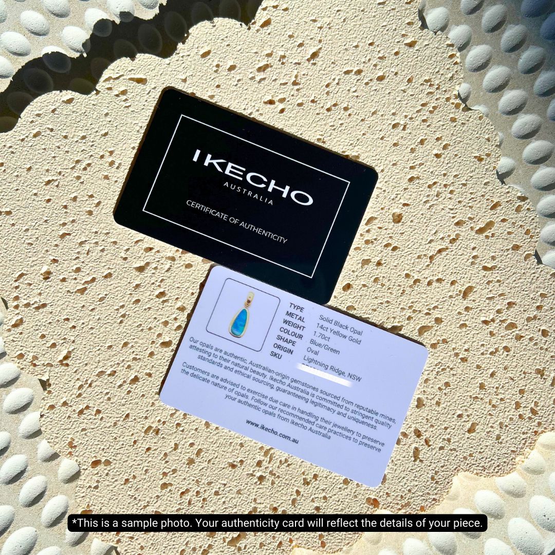 While every pearl purchase comes with a Certificate of Authenticity, if you're ordering one of our exclusive one-off Opal pieces, you'll receive a specialised Opal Certificate, providing detailed information about its authenticity and origins. [Learn more here.]