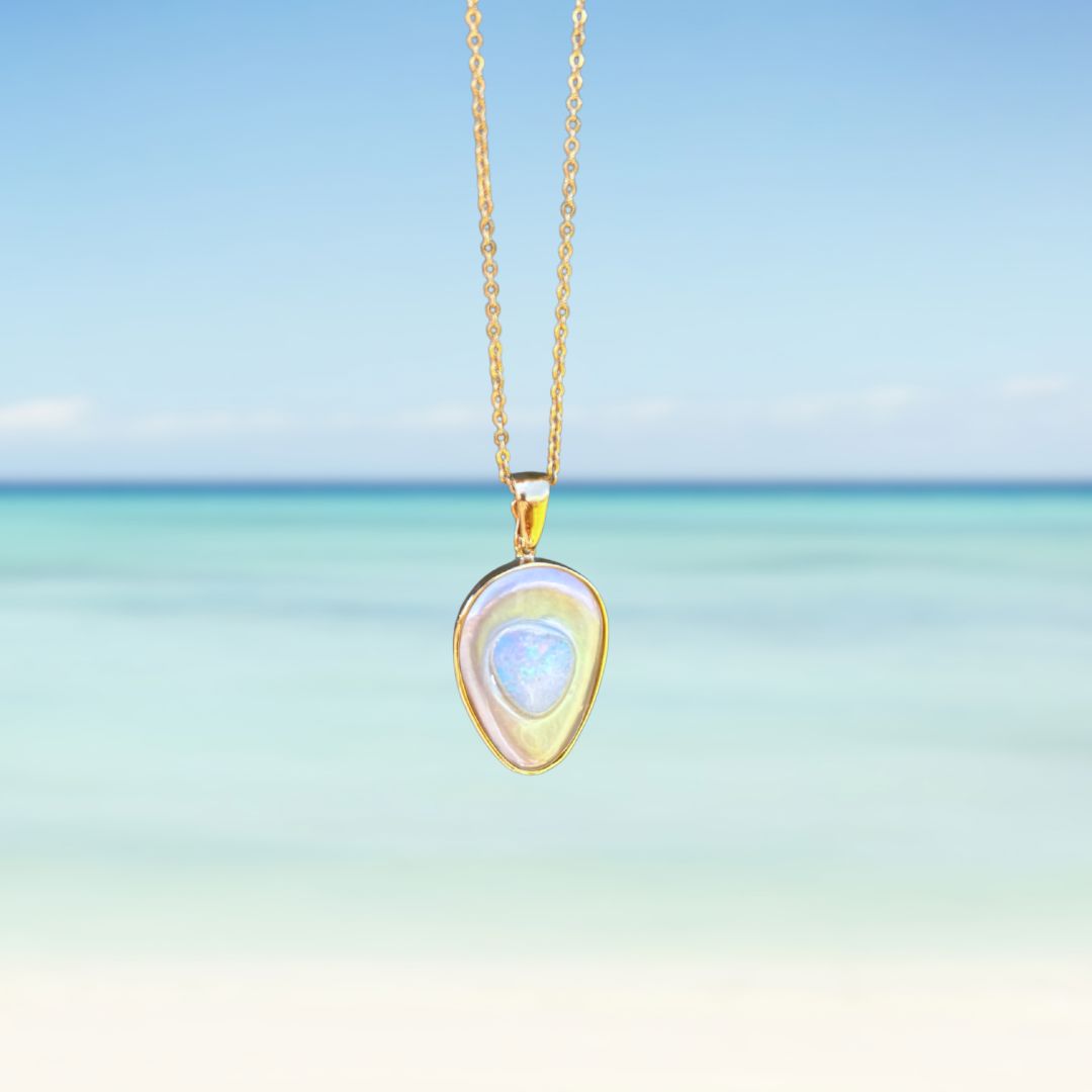 Discover this stunning piece from the Earth+Ocean Jewellery collection, featuring a unique Solid Opal and South Sea Mabe Pearl. Each piece showcases a natural fusion of opal encased in nacre layers by a Batwing Oyster, creating a one-of-a-kind treasure. This collection captures the essence of natural beauty, offering exclusive jewellery that seamlessly blends oceanic and earthy elements through a remarkable natural process.
