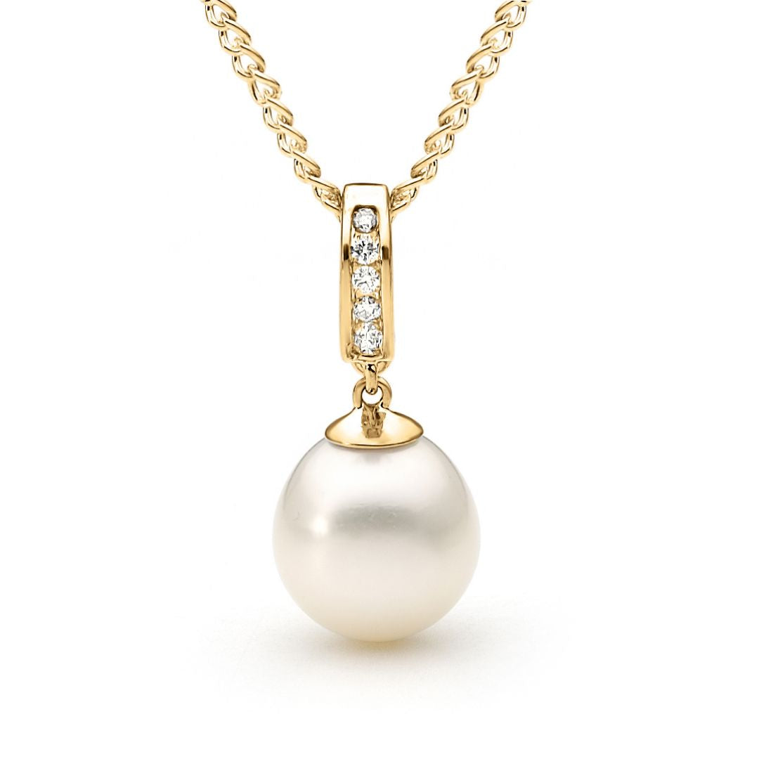 Timeless elegance with a touch of sparkle. The Amalfi Pendant features a luminous Freshwater pearl suspended from a diamond-encrusted bail, adding just the right amount of brilliance. Crafted in 9ct Yellow Gold, this stunning enhancer is designed to elevate any look, from everyday elegance to special occasions.