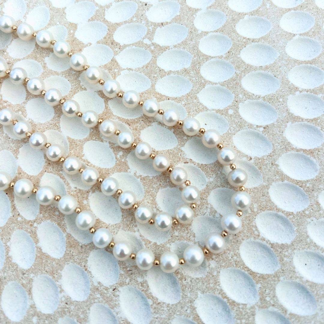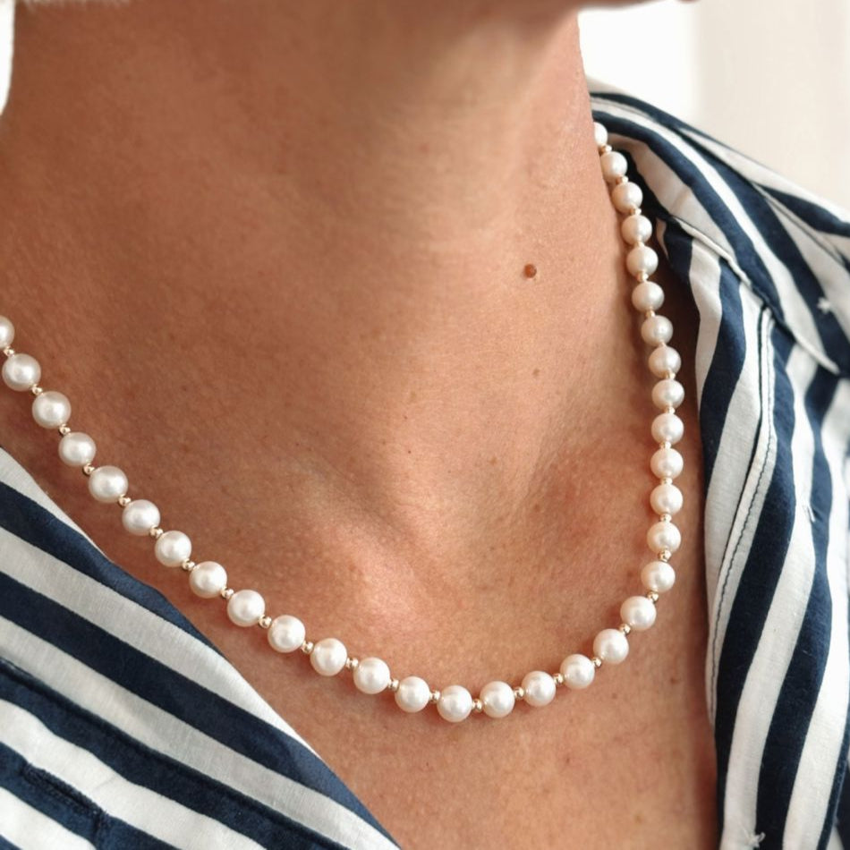 A highly requested design, the Anastasia Necklace combine lustrous freshwater pearls with solid gold beads for a modern take on a classic. Handcrafted with care, this piece can be customised to your preferred length—Just use the Ask About This Product form below.