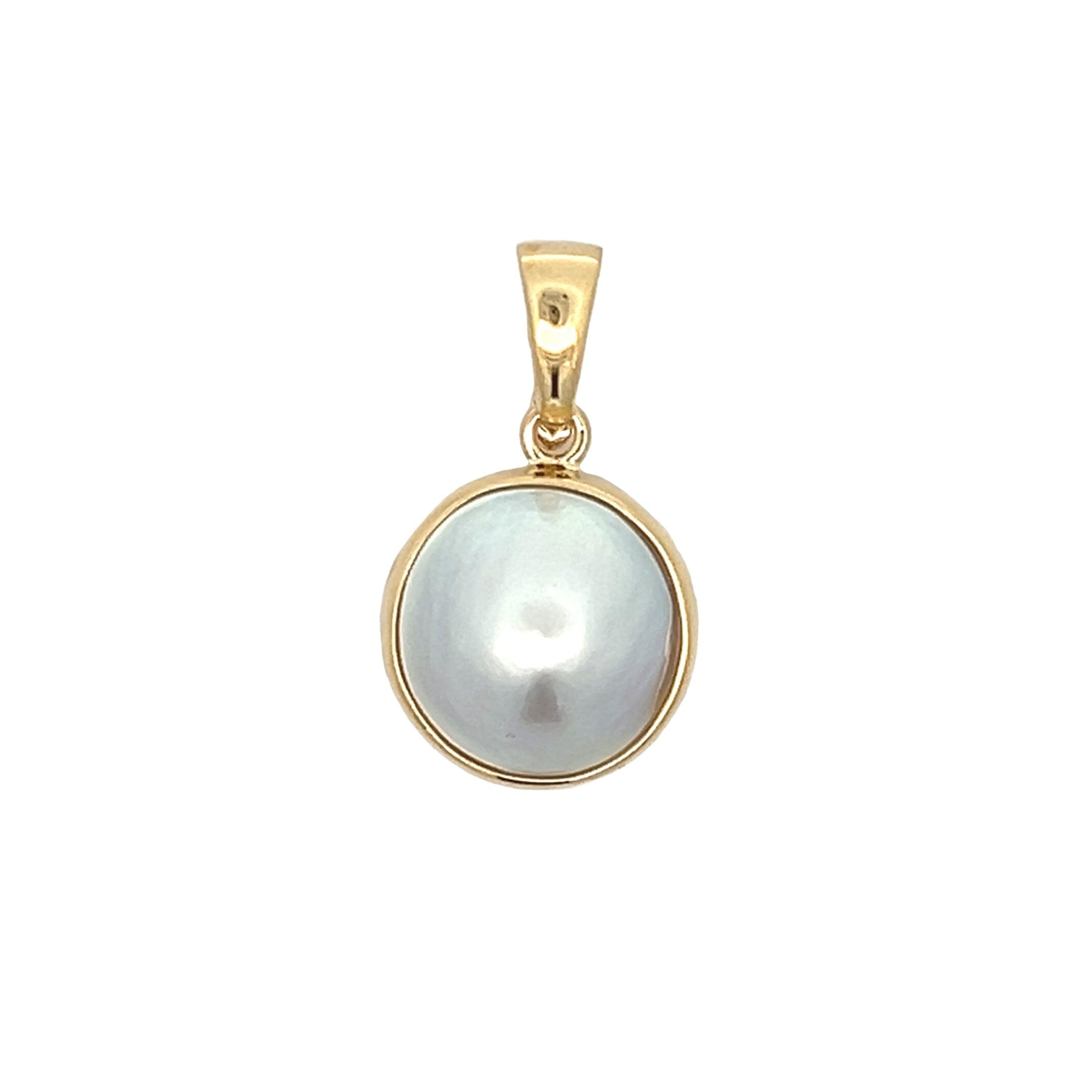 Elevate your elegance with the Australian Mabe Round Pendant. Crafted from 9ct yellow gold, this stunning piece features an Australian Mabe pearl, showcasing a unique iridescent lustre. It's round shape adds a touch of sophistication, making it the perfect accessory for any occasion. This pendant is an enhancer with an opening bail, making it incredibly versatile and perfect for pairing with various chains or necklaces.