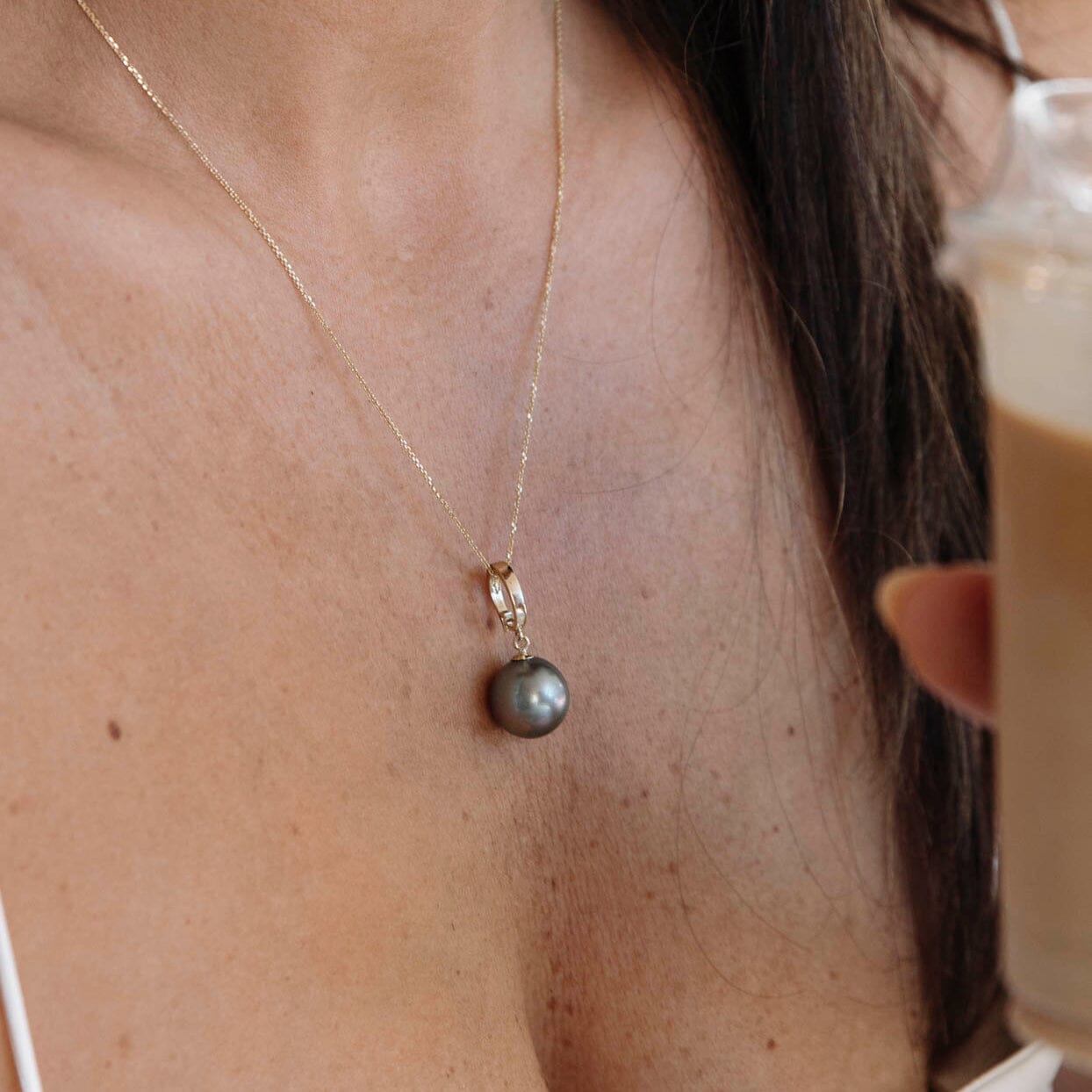 Introducing our Beatrice Pendant, showcasing an exquisite Tahitian Black Pearl renowned for its stunning lustre. This pendant is an enhancer with an opening bail, making it incredibly versatile and perfect for pairing with various chains or necklaces. Pair it with our Beatrice Earrings to effortlessly create a captivating and harmonious ensemble.
