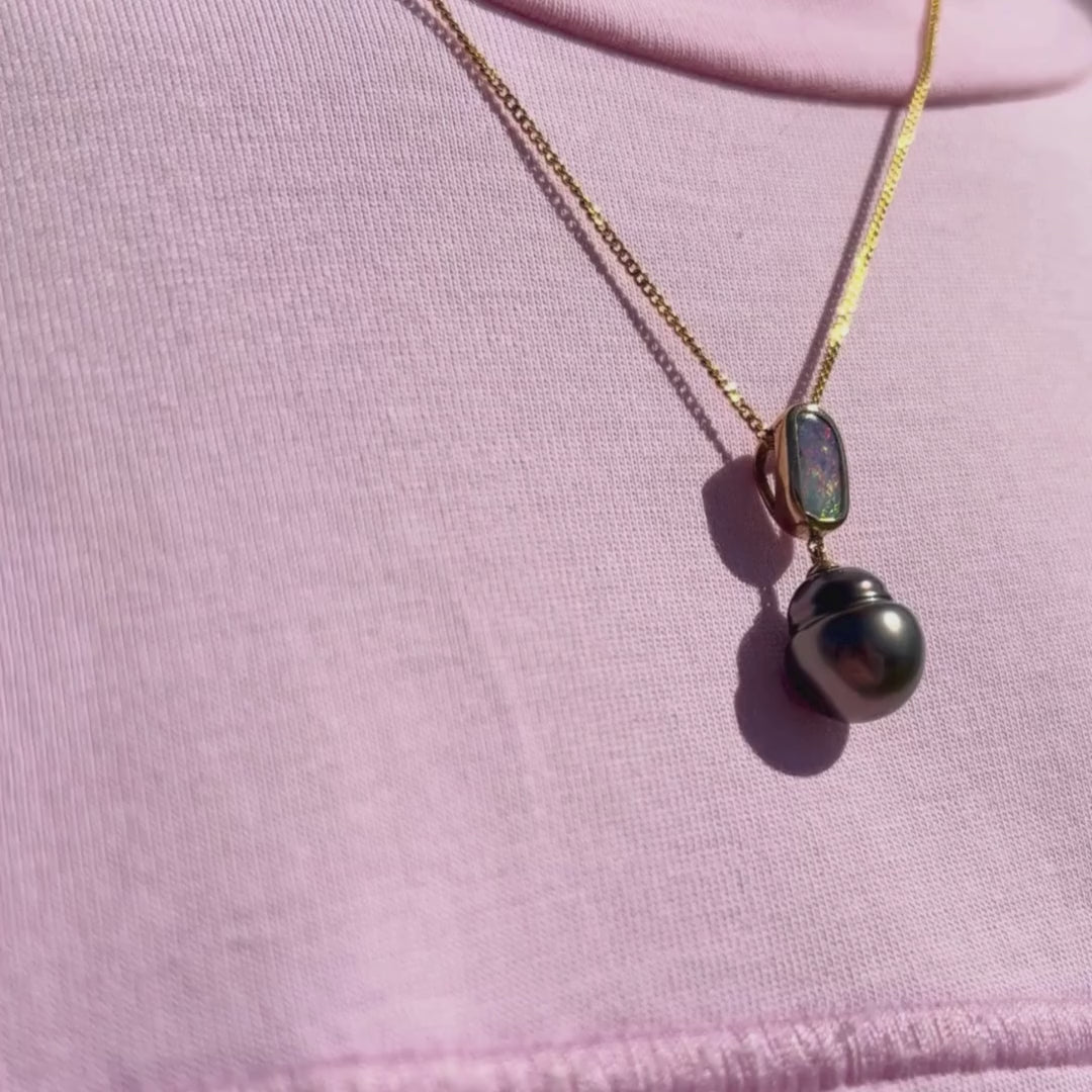 Charcoal Blue Boulder Opal & Tahitian Pearl Pendant 007