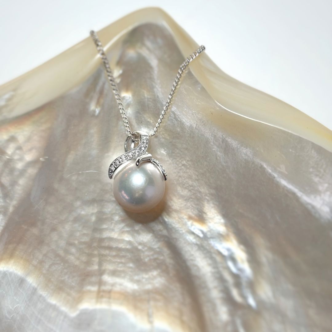Graceful and refined, the Estelle Pendant showcases a luminous white Edison freshwater pearl cradled in a contemporary claw setting. Sparkling cubic zirconia accents curve gently around the pearl, adding a modern touch to this timeless piece. Crafted in sterling silver, it's a beautiful choice for elevating everyday wear or complementing an elegant ensemble.
