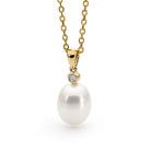 Introducing our Mary Pendant: a stunning fusion of elegance and sophistication. Featuring a diamond stud bail, this freshwater drop pearl pendant exudes timeless beauty. Elevate any outfit effortlessly with its subtle yet captivating charm, perfect for every occasion.