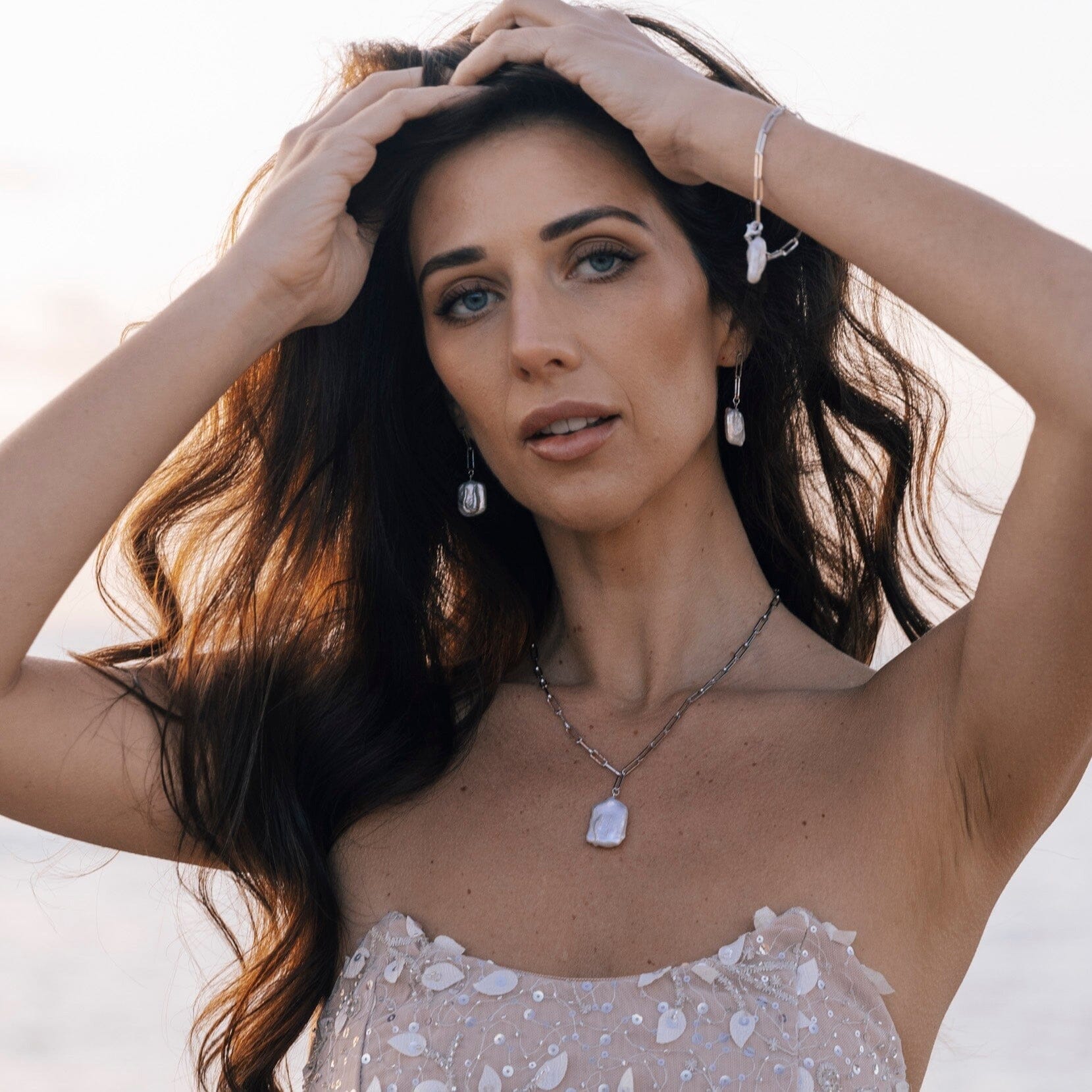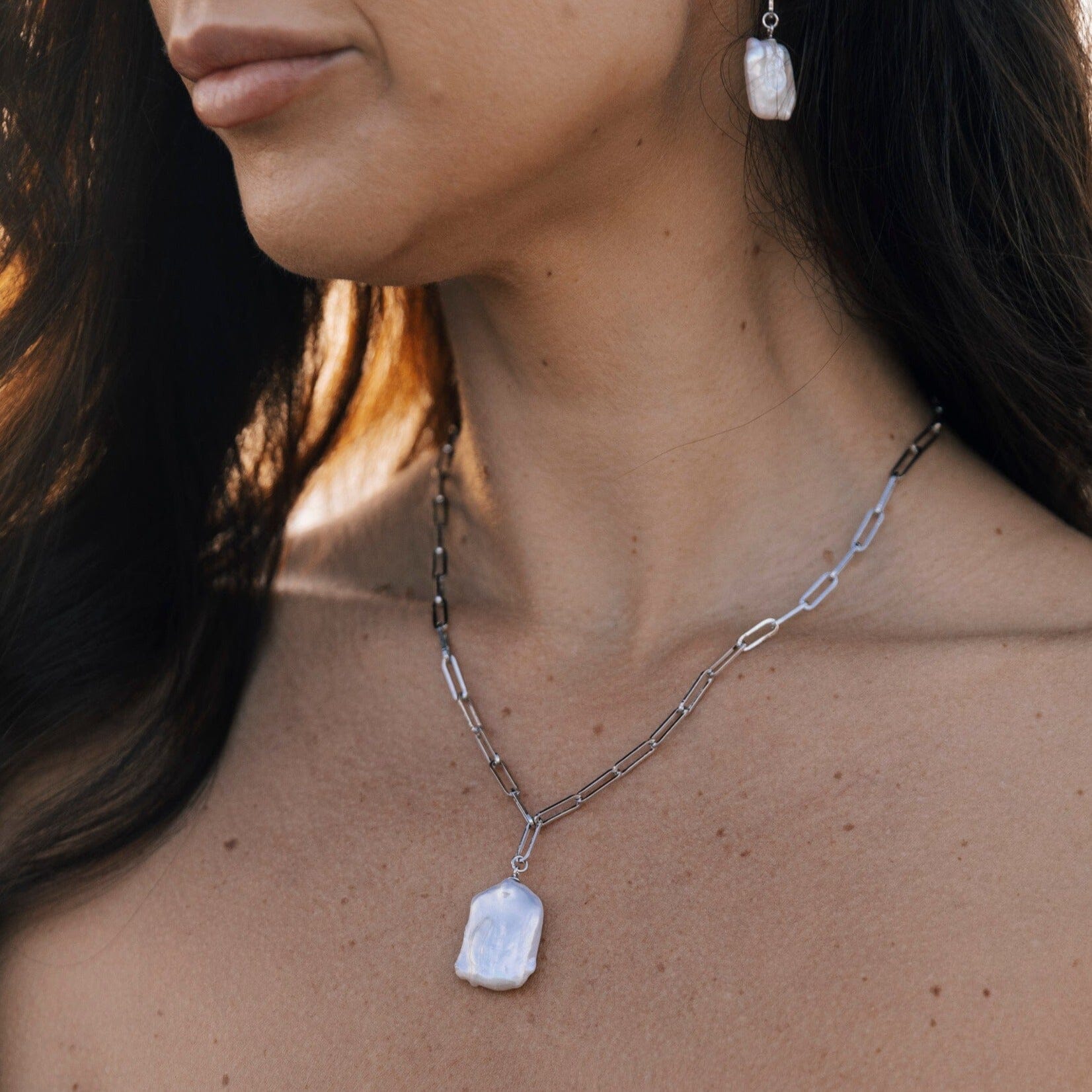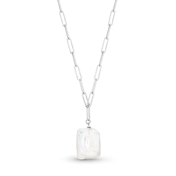 Introducing a masterpiece of modern sophistication and natural allure – our Sterling Silver Paperclip Chain Necklace adorned with a captivating Biwa shaped freshwater pearl. This necklace embodies the perfect blend of contemporary design and the timeless elegance of nature's treasures, creating a statement piece that effortlessly enhances any neckline.