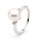 Adorned with a lustrous South Sea pearl and complemented by two delicate diamond studs, our ring in 9ct gold is the perfect accessory for any occasion. Its subtly stylish design allows for effortless wear, seamlessly transitioning from day to night with elegance.