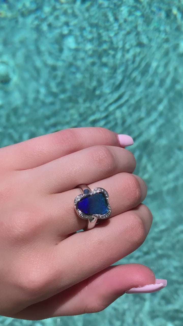 Ink Blue Boulder Opal Ring 007