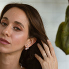 The Eden Convertible Studs feature a freshwater pearl at the front, paired with a striking Edison pearl at the back. These studs offer exceptional versatility, allowing you to wear them with or without the charm that adds a distinctive touch. Whether you choose the bold charm for a statement look or wear them without for a more classic style, these earrings effortlessly combine elegance and flexibility for any occasion.