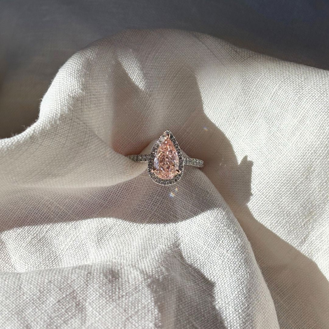 Fancy Pink Teardrop Lab-Grown Diamond Ring 015