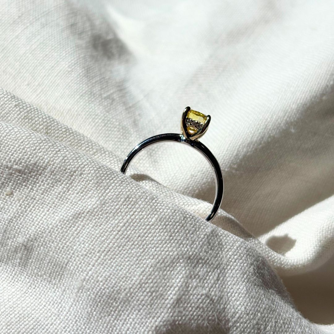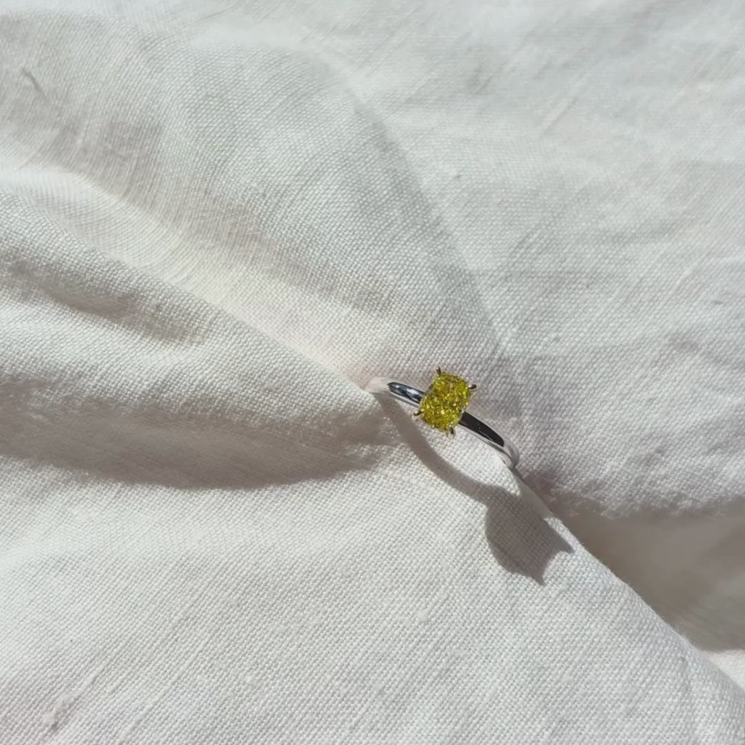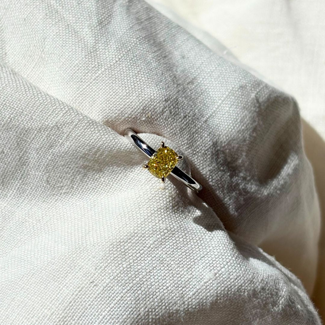 Fancy Yellow Cushion Lab-Grown Diamond Ring 019