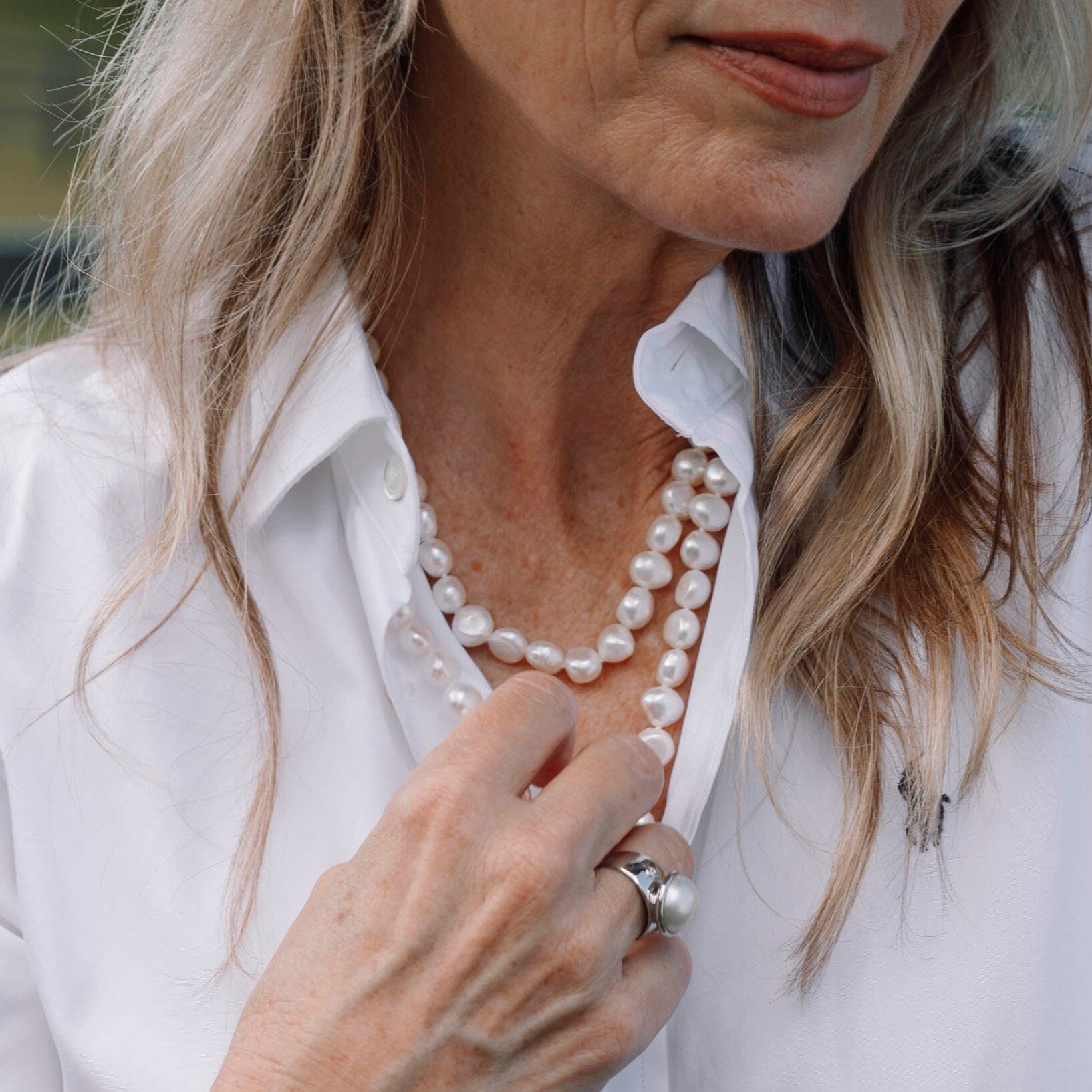 Celebrate individuality with the Andie Necklace, featuring lustrous white Keshi freshwater pearls, each naturally unique in shape and shimmer. These organic pearls exude a delicate yet distinctive elegance, making every necklace one of a kind. Finished with a sleek ball clasp for effortless wear, this timeless piece is perfect for elevating any look, from everyday sophistication to special occasions.