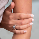 Crafted in 18ct Gold, the Black Moon Ring exudes sophistication with its lustrous black Tahitian pearl, one of the rarest and most sought-after pearls in the world. Framed by two triplets of sparkling diamonds, this exquisite design highlights the pearl’s deep, iridescent hues, making it a true statement of luxury and refinement.