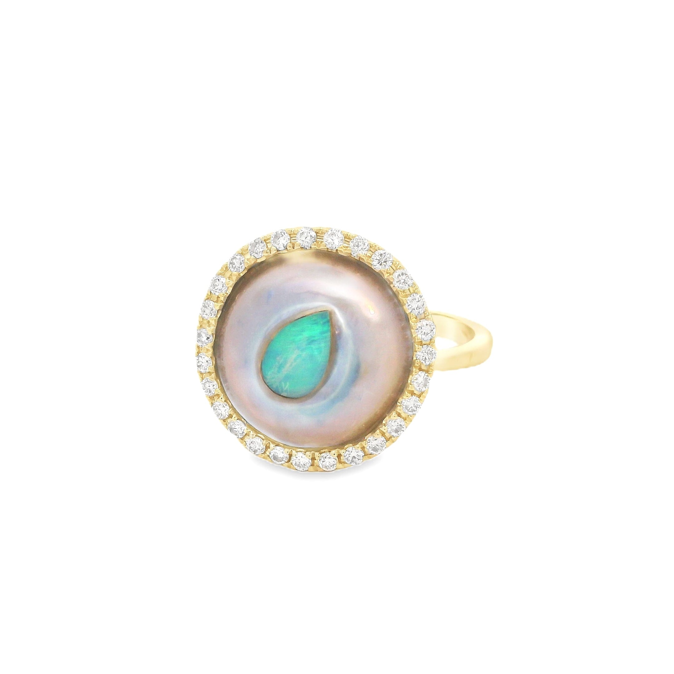 Discover this stunning piece from the Earth+Ocean Jewellery collection, featuring a unique Solid Opal and South Sea Mabe Pearl. Each piece showcases a natural fusion of opal encased in nacre layers by a Batwing Oyster, creating a one-of-a-kind treasure. This collection captures the essence of natural beauty, offering exclusive jewellery that seamlessly blends oceanic and earthy elements through a remarkable natural process.