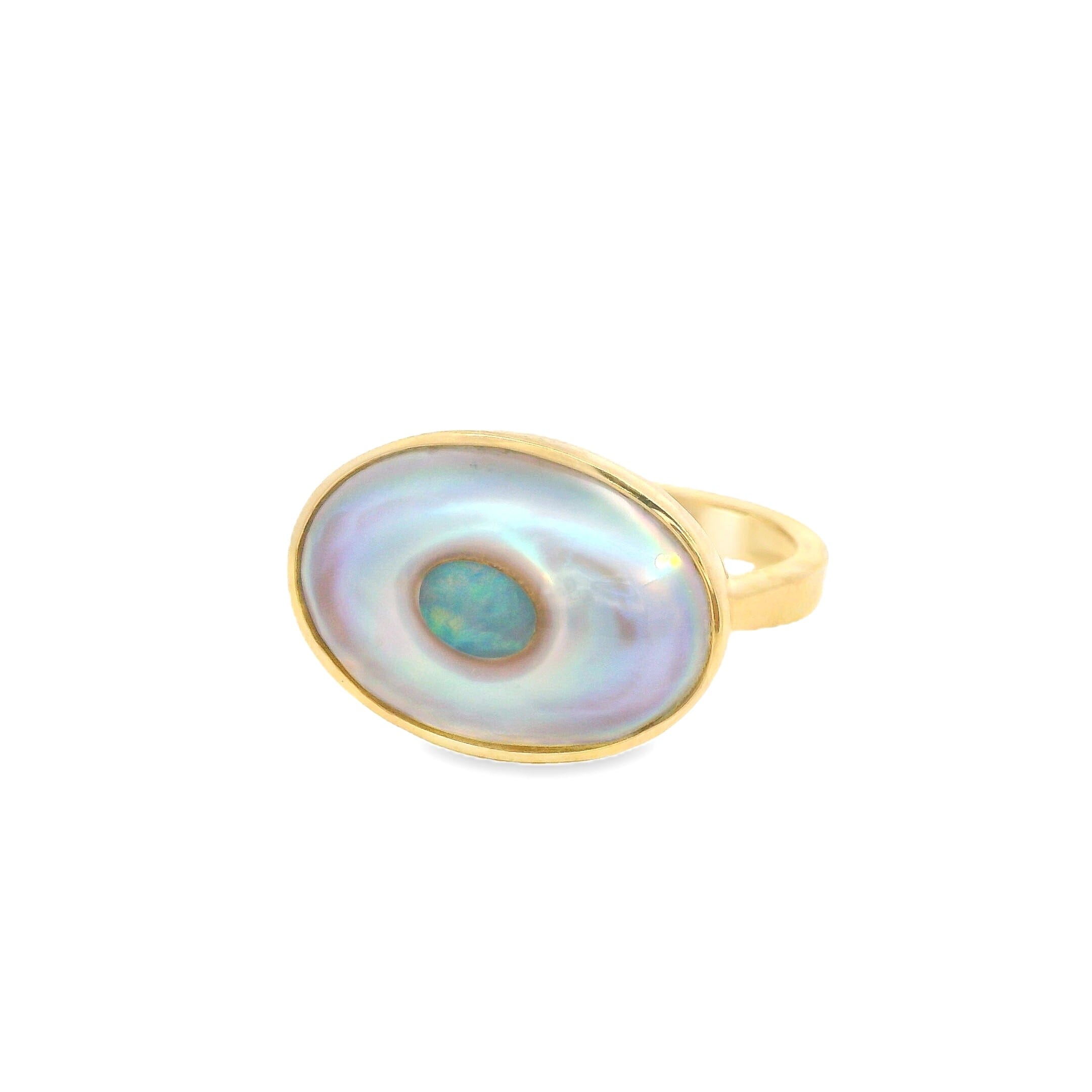 Discover this stunning piece from the Earth+Ocean Jewellery collection, featuring a unique Solid Opal and South Sea Mabe Pearl. Each piece showcases a natural fusion of opal encased in nacre layers by a Batwing Oyster, creating a one-of-a-kind treasure. This collection captures the essence of natural beauty, offering exclusive jewellery that seamlessly blends oceanic and earthy elements through a remarkable natural process.