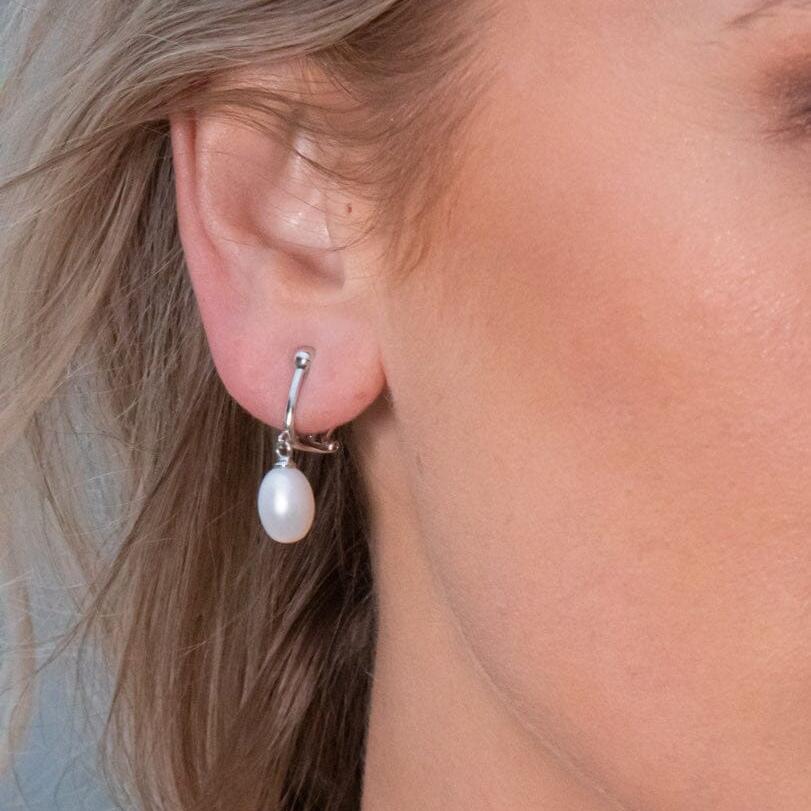 Elegance without the need for piercings. The Emily Clip-Ons are beautifully crafted in sterling silver, featuring a luminous drop pearl that dangles effortlessly for a touch of timeless sophistication. Designed for all-day comfort, these classic clip-on earrings are perfect for everyday wear or special occasions. Available in White, Pink, and Dyed Black to suit your unique style.