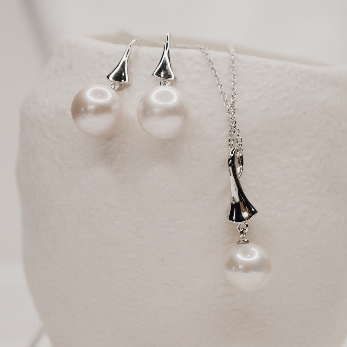 Enhance every moment from dusk till dawn with the Golden Sunset Earrings. These classic shepherd hook earrings are available in sterling silver rhodium-plated or rose gold-plated options and feature a stunning Edison freshwater cultured pearl of exceptional quality. Wear them gracefully solo or combine them seamlessly with the Golden Sunset Pendant for a flawless ensemble.