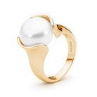 The Odyssey Ring showcases a generous-sized button freshwater pearl, available in natural pink or white. This lustrous pearl is elegantly encased in a cradled setting of 9ct yellow or rose gold. The unique and sophisticated design of the Odyssey Ring makes it a timeless piece, perfect for any occasion. Ideal for both everyday wear and special events, this ring is a stunning testament to refined taste and classic style.