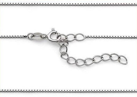 Box chains are adored for their elegant simplicity and robust construction. Featuring square-shaped links with a sleek finish, these chains are perfect for layering, adding pendants, and effortlessly pairing with our sterling silver pendants. Our rhodium plated sterling silver box chains offer a timeless and versatile option.